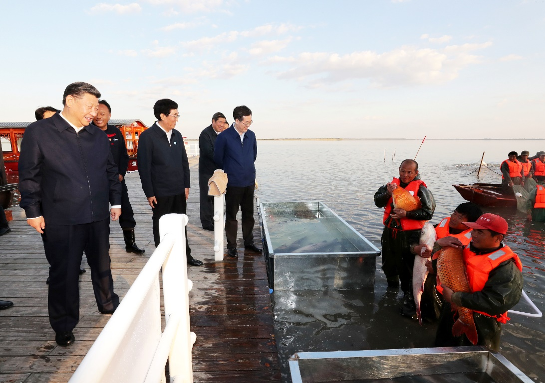 2018年9月26日,习近平在吉林查干湖了解渔民捕捞作业情况。鞠鹏摄