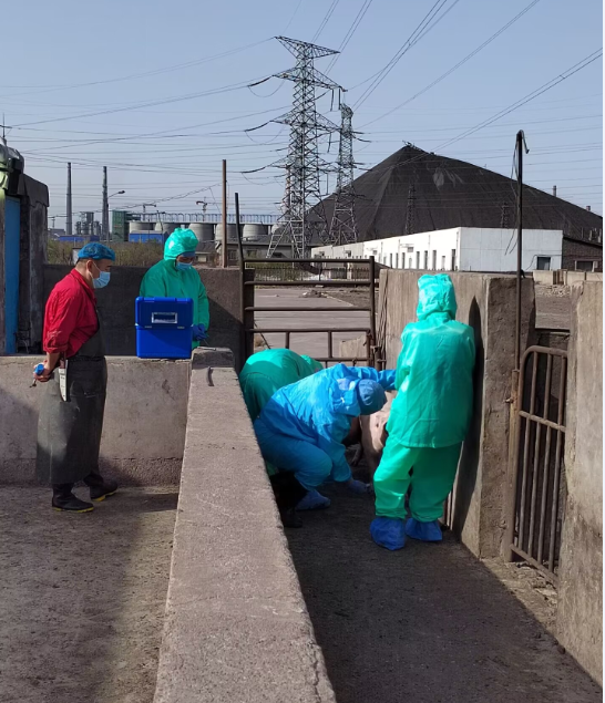 为进一步加强屠宰环节非洲猪瘟排查监测,督促屠宰企业严格落实“两项制度”,有效保障生猪稳产保供及猪肉产品质量安全,近日,市动物疫控中心技术人员深入甘肃酒钢集团宏源新实业有限公司生猪屠宰场进行现场采样,共采集各类样品57份,其中待宰圈生猪血样20份、屠宰车间环境棉拭子样品20份、屠宰生猪组织样品17份,经兽医实验室非洲猪瘟病原学检测,结果均为阴性。