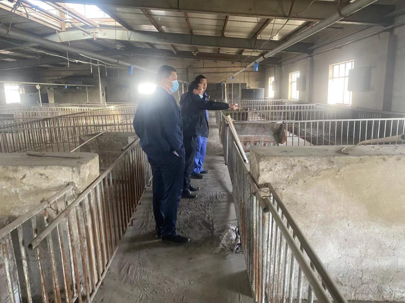 技术人员现场对照项目设计图纸,对自动上料系统、排风系统、粪污处理系统等设施的改造关键点和初期投放哨兵猪注意事项进行技术指导,要求企业在赶进度的同时,抓实施工安全和建设质量,严格按照环保要求配套养殖场粪污资源化利用设施,开展圈舍消毒灭源,从源头上保障生产安全。