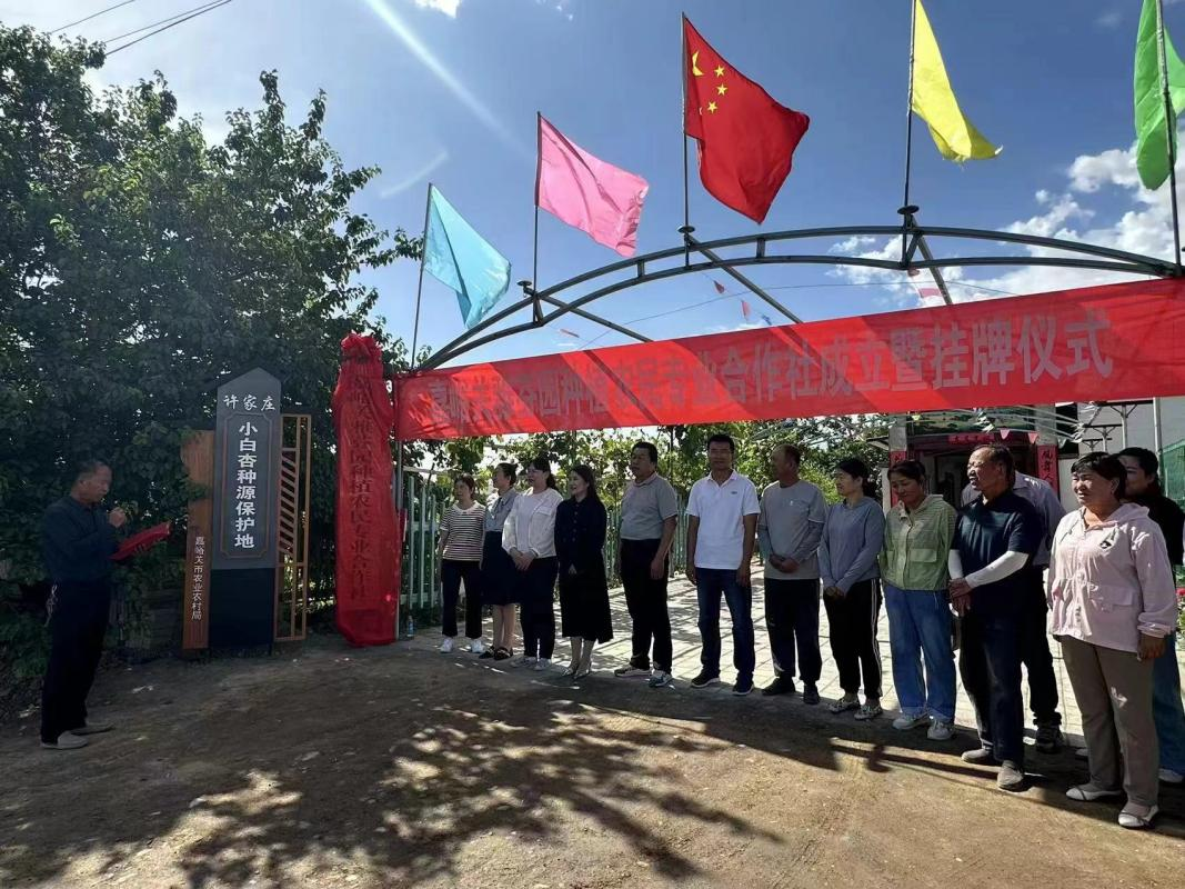 又到杏子成熟时。6月28日,在文殊村许家庄小白杏基地,彩旗迎风飘扬,一片欢声笑语。嘉峪关雅芬园种植农民专业合作社正在举行成立挂牌仪式。