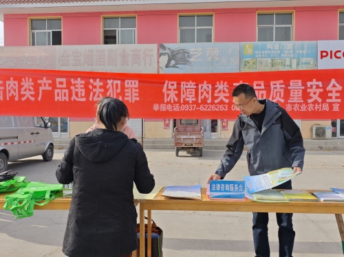 三是加强宣传引导。10月26日,我局在新城镇开展了“打击肉类产品违法犯罪,保障肉类产品质量安全”主题宣传活动。活动中,工作人员向群众发放《食品动物中禁止使用的药品及其他化合物清单》《关于严禁私屠滥宰、屠宰病死畜禽告知书》和畜产品质量安全知识手册等,广泛宣传肉类产品安全相关法律法规,引导群众了解鉴别私宰肉、病猪肉、注水肉的方法和肉制品安全等常识,切实提升群众食品安全防范意识和自我保护能力,营造共治共享的良好社会氛围。此次活动发放禁限用兽药清单和宣传手册80余份,现场解答群众问题10余次。