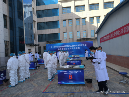 2024年7月5日—6日,2024年甘肃省百万职工劳动和技能竞赛动物疫病防治员省级决赛在甘肃省畜牧工程职业技术学员成功举办,来自全省14个市州和兰州新区代表队的45名选手同场竞技、交流切磋。竞赛采取理论考试和现场操作相结合的形式进行,主要考核猪瘟疫苗免疫注射、猪前腔静脉采血、鸡翅静脉采血、鸡心脏采血、鸡体解剖与采样等操作技能。