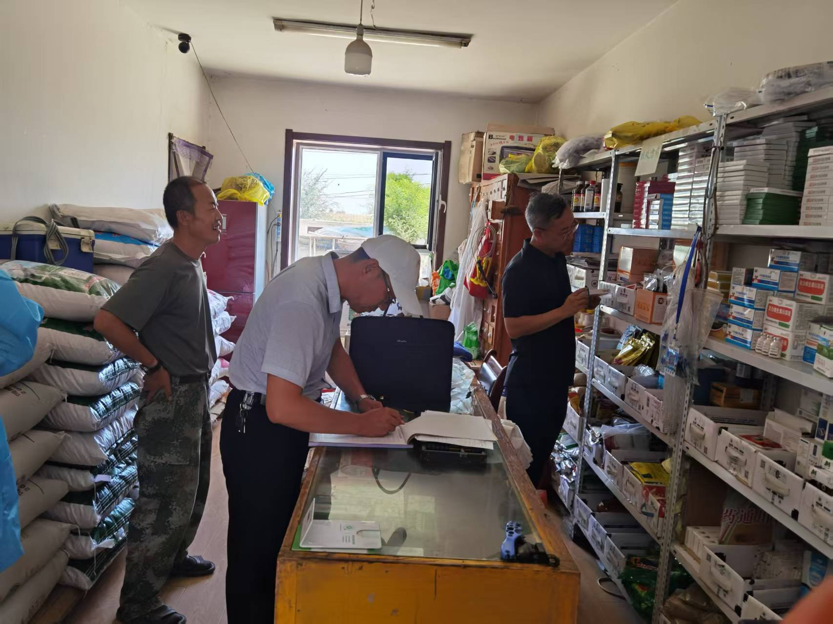 此次专项整治行动主要排查养殖场户生产记录是否规范、兽药饲料添加剂是否合理、购买使用记录是否齐全、兽药使用是否安全合规、病死畜禽是否无害化处理、水产养殖生产记录是否存在内容不全、投入品使用不规范、休药期制度落实不到位、违法使用禁(停)用药物导致药残超标以及水生动物疫病等问题。共排查养殖场8家,兽药饲料经营门店2家,出动人员10人次,发放《禁限用兽药名录》《水产养殖用药明白纸》《病死或死因不明动物及动物产品无害化处理告知书》等宣传资料50余份,抽检牛羊尿液样品15份,“瘦肉精”检测结果均为阴性。