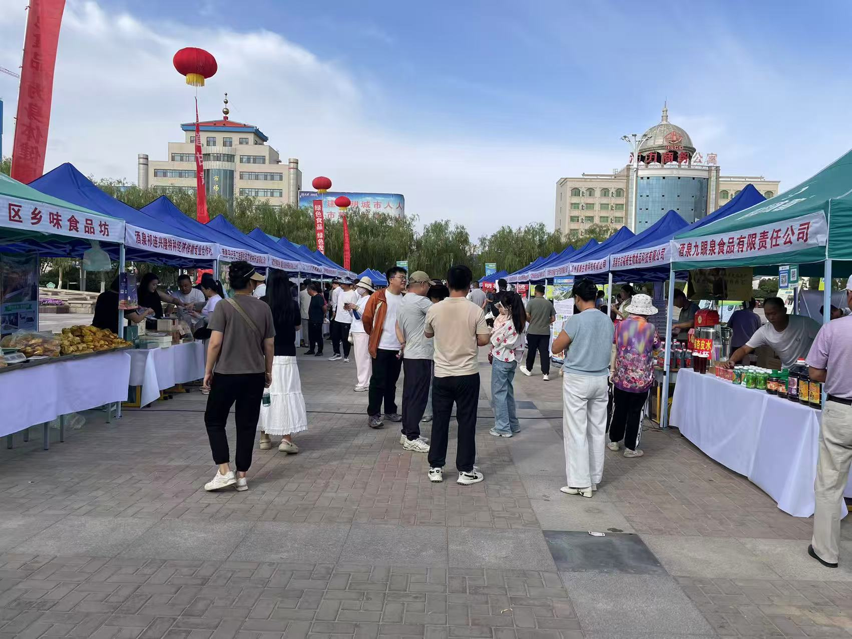 嘉峪关市雄关广场呈现出一片生机勃勃的“绿色长廊”和琳琅满目的“甘味集市”,有玫瑰、沙棘、核桃油、驴肉辣酱、枸杞、紫轩葡萄酒、祁牧酸奶等系列产品,有机羊肉、手工挂面、甘大嫂酱菜、蒲公英茶、辣椒酱、辣椒面、番茄酱及绿色蔬菜瓜果等精品。同时,具有酒嘉地方特色、备受消费者青睐的明祥火锅底料、浙伍氏胡萝卜汁、锅盔、烧壳子、石磨面粉、手工黑醋、文殊西梅等优质农产品加盟参展。这些绿色食品及“甘味”农产品是安全、优质、健康的代名词,凝结着广大农民的辛勤汗水,承载着陇原大地的独特风韵,为嘉峪关市广大市民盛上了一桌独具风味特色的农产品盛宴。