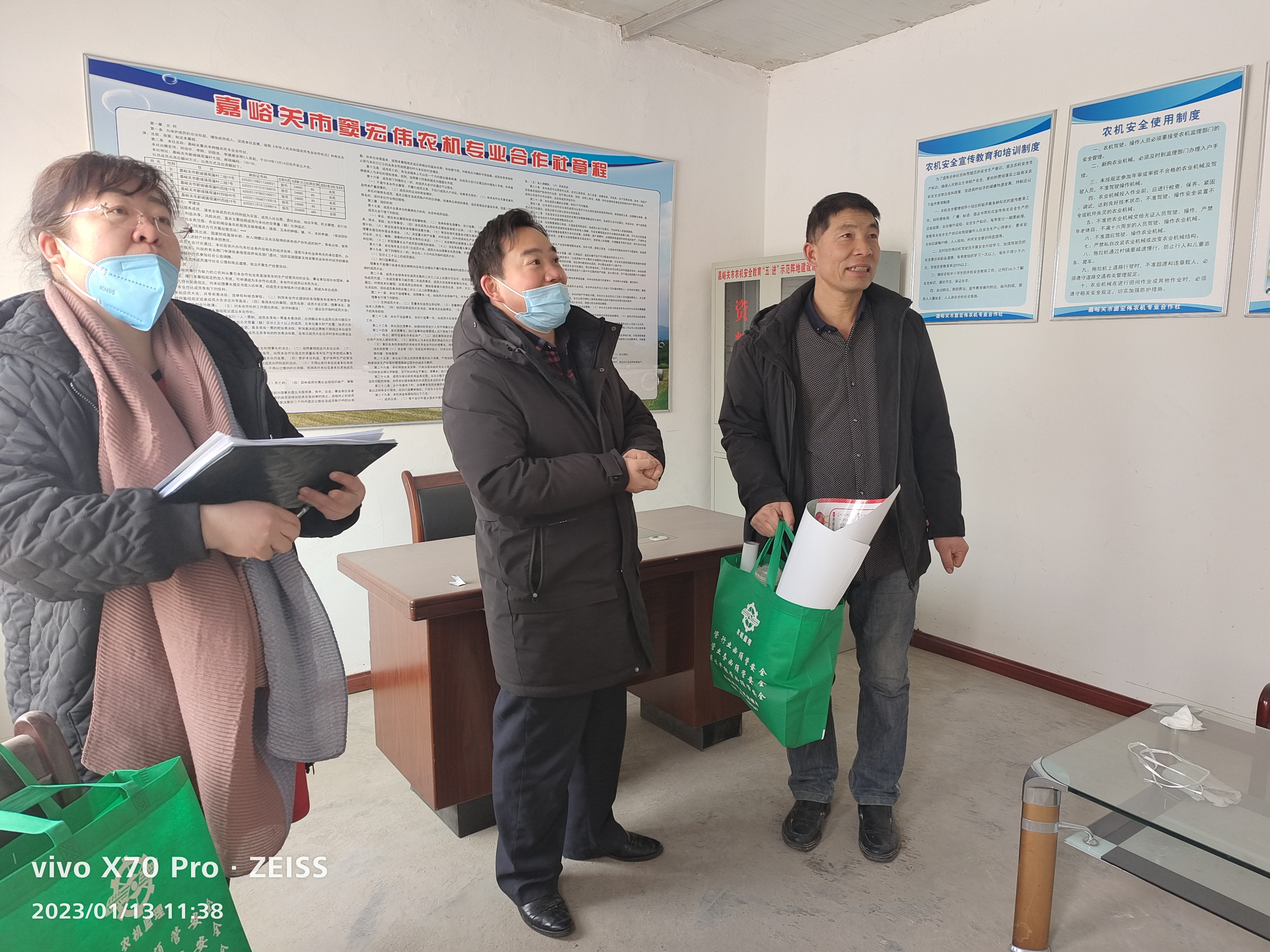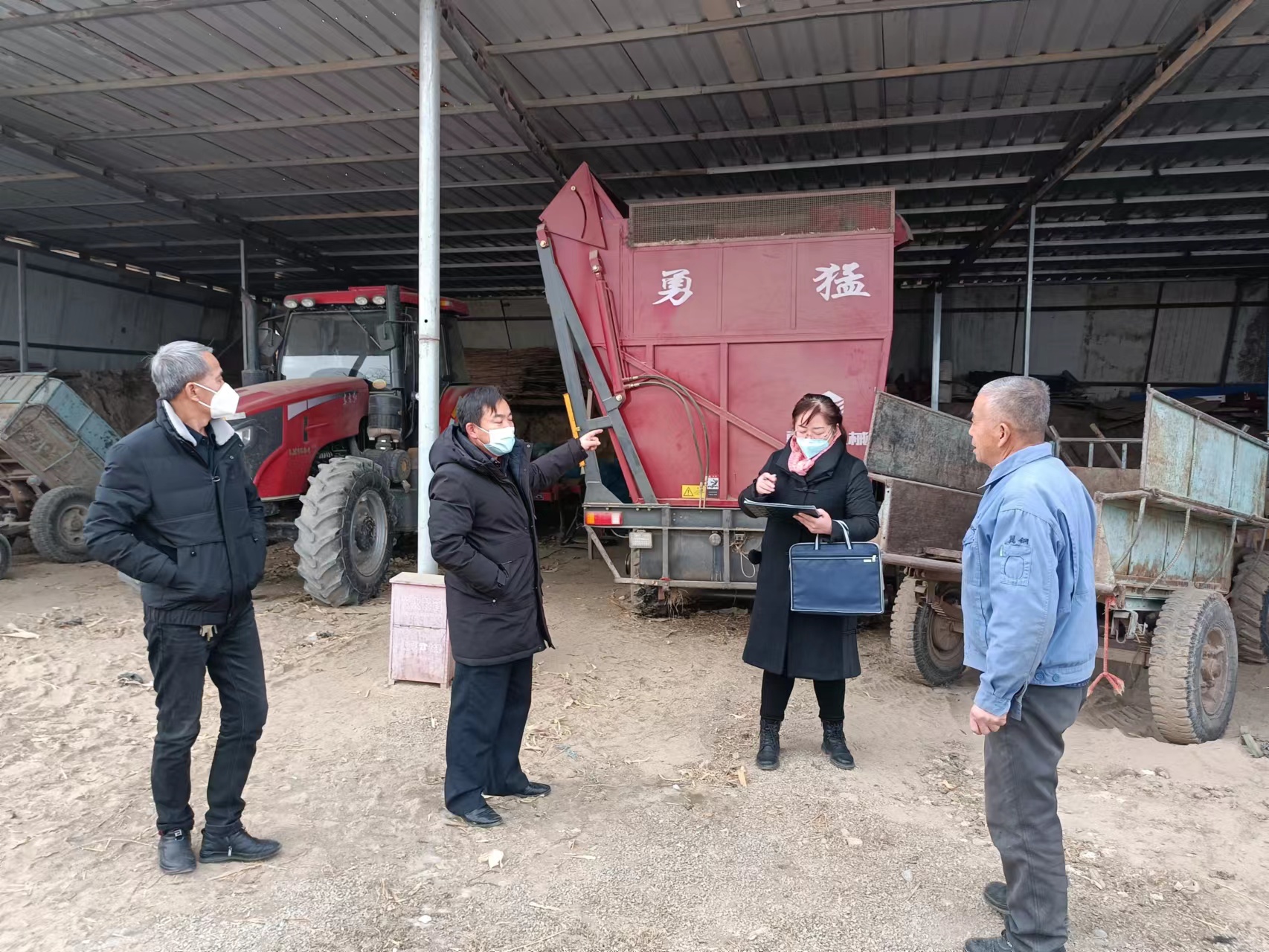 生产千万条,安全第一条。按照市农业农村局各行业安全检查排查小组安排,检查人员先后深入10家农机专业合作社及6家农机维修企业,对机具库棚、储物库房、办公室等重点场所进行了细致检查,重点查检排查安全防护、警示标识、反光贴粘贴、油料间有无火灾隐患、消防器具配备、各类制度、台账资料是否健全等情况,对发现的部分店铺存在摆货物放杂乱、灭火器过期等不规范行为,现场要求进行及时整改和更换。在检查的同时,向农机企业负责人发放了各类农机安全宣传资料300余份,要求以农机企业为核心,通过“两节”冬闲期间走亲窜友,进一步做好预防宣传。