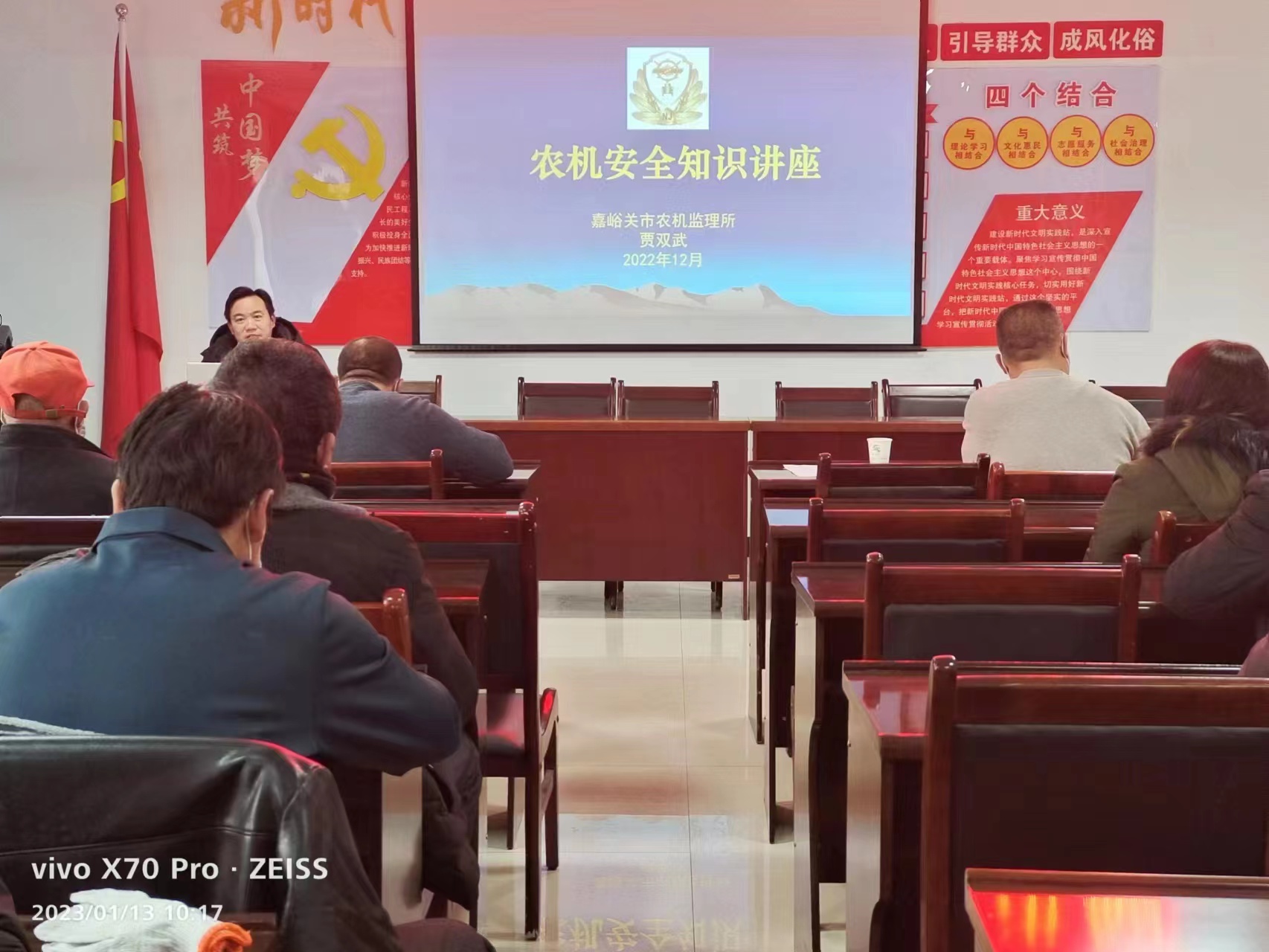 天寒地冻,情系安全。农机监理人员以“功成不必在我,功成必定有我”的思想境界,利用农村党员冬训之际,深入到镇村开展农机安全讲座培训3期,培训农民90余人。通过列举全国交通安全案例、当地农机违法处罚案例,以案说法,将《道路交通安全法》《安全生产法》《农业机械安全监督管理条例》《甘肃省农业机械管理条例》等法律法规关于农机安全监管内容贯穿其中,进一步提高农机从业人员责任意识、法律意识、安全意识。把杜绝拖拉机无证驾驶、无证行驶、违法载人、酒驾醉驾、改装拼装、逾期未检等违法违规行为和坚决遏制亡人农机事故作为主要工作目标。