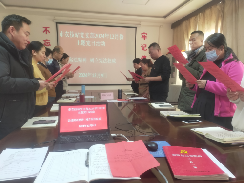 2024年12月4日是第十一个国家宪法日,为深入贯彻落实习近平法治思想,切实推动“12·4”国家宪法日和“法治宣传周”活动深入开展,大力弘扬宪法精神,进一步营造尊法、学法、守法、用法的浓厚氛围。按照局党组统一安排部署,12月9日上午,市农技站党支部开展了“弘扬宪法精神 树立宪法权威”为主题的“主题党日”活动。