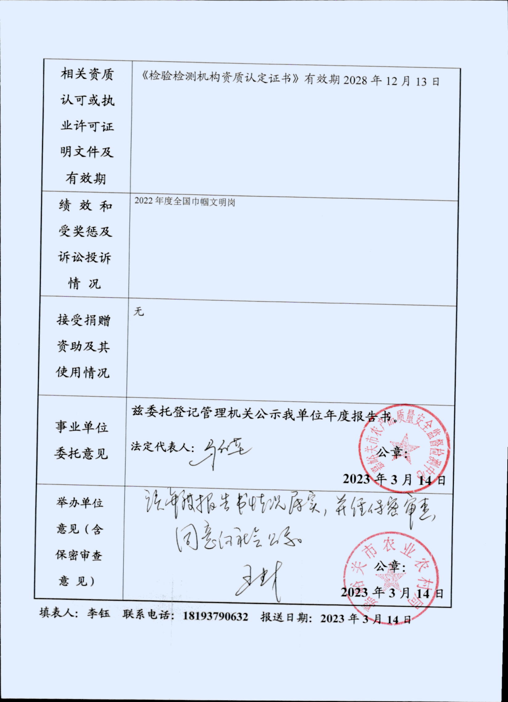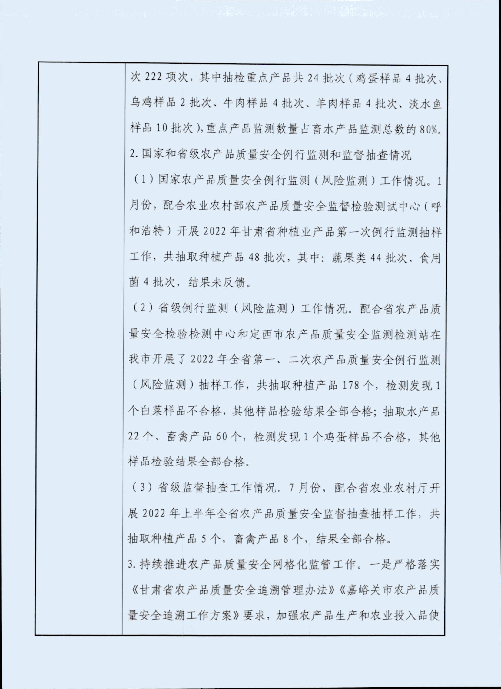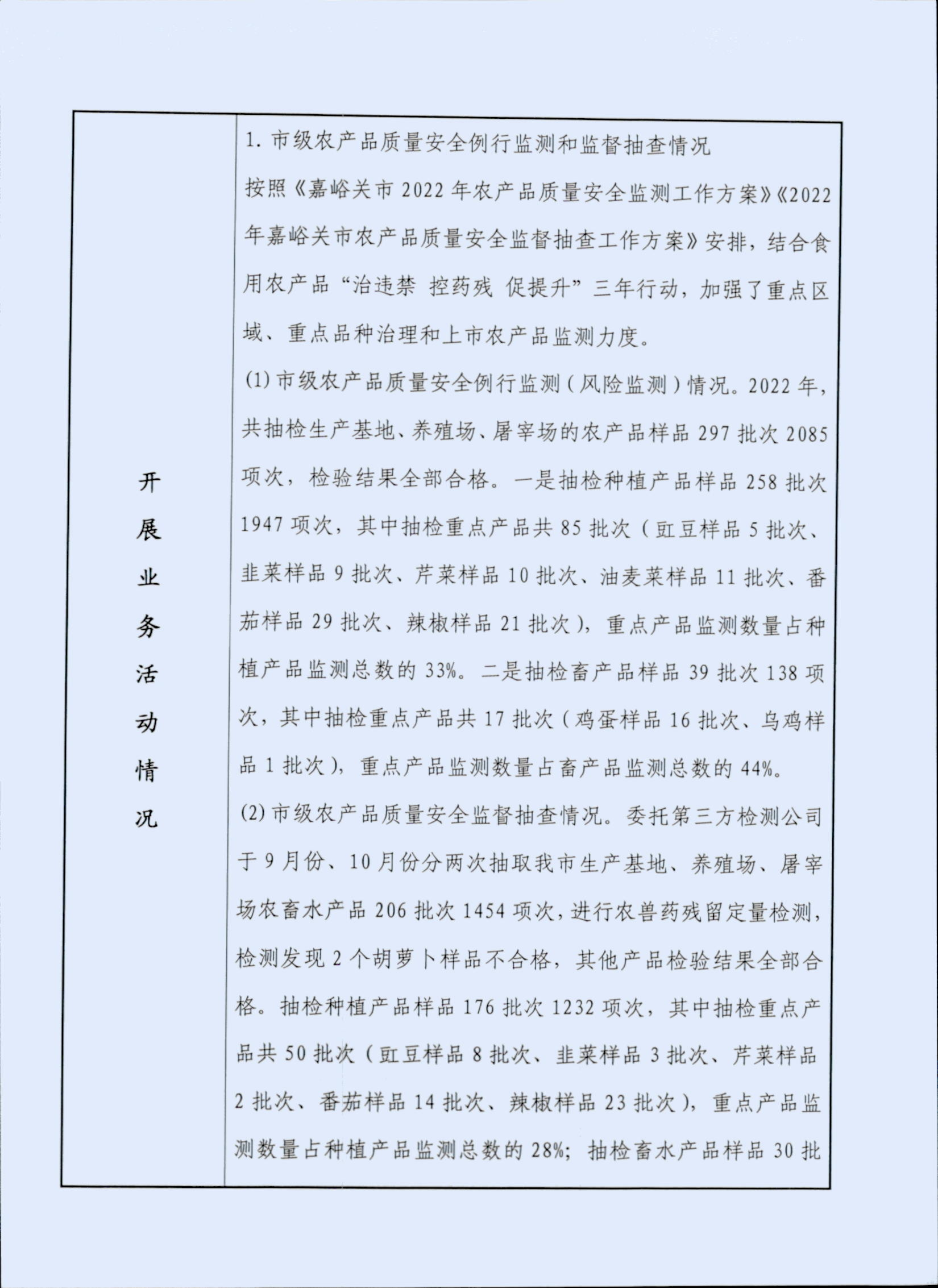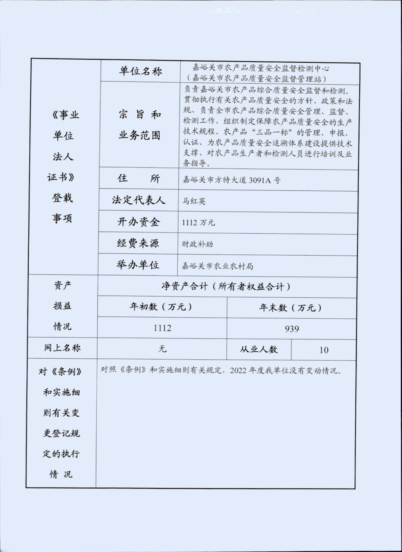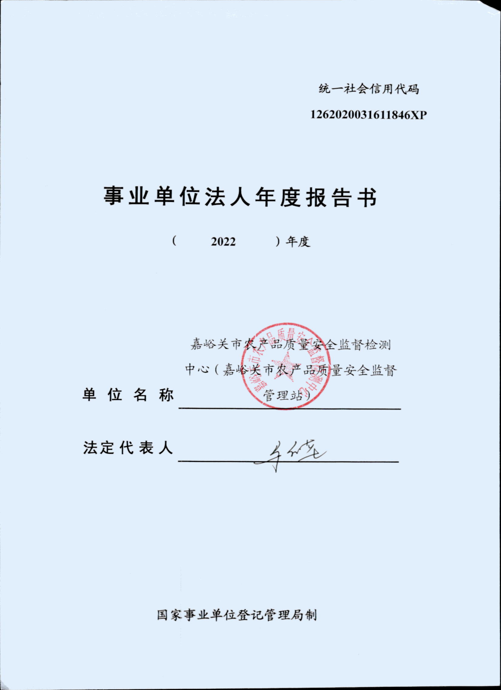 事业单位法人年度报告书——嘉峪关市农产品质量安全监督监测中心(嘉峪关市农产品质量安全监督管理站)