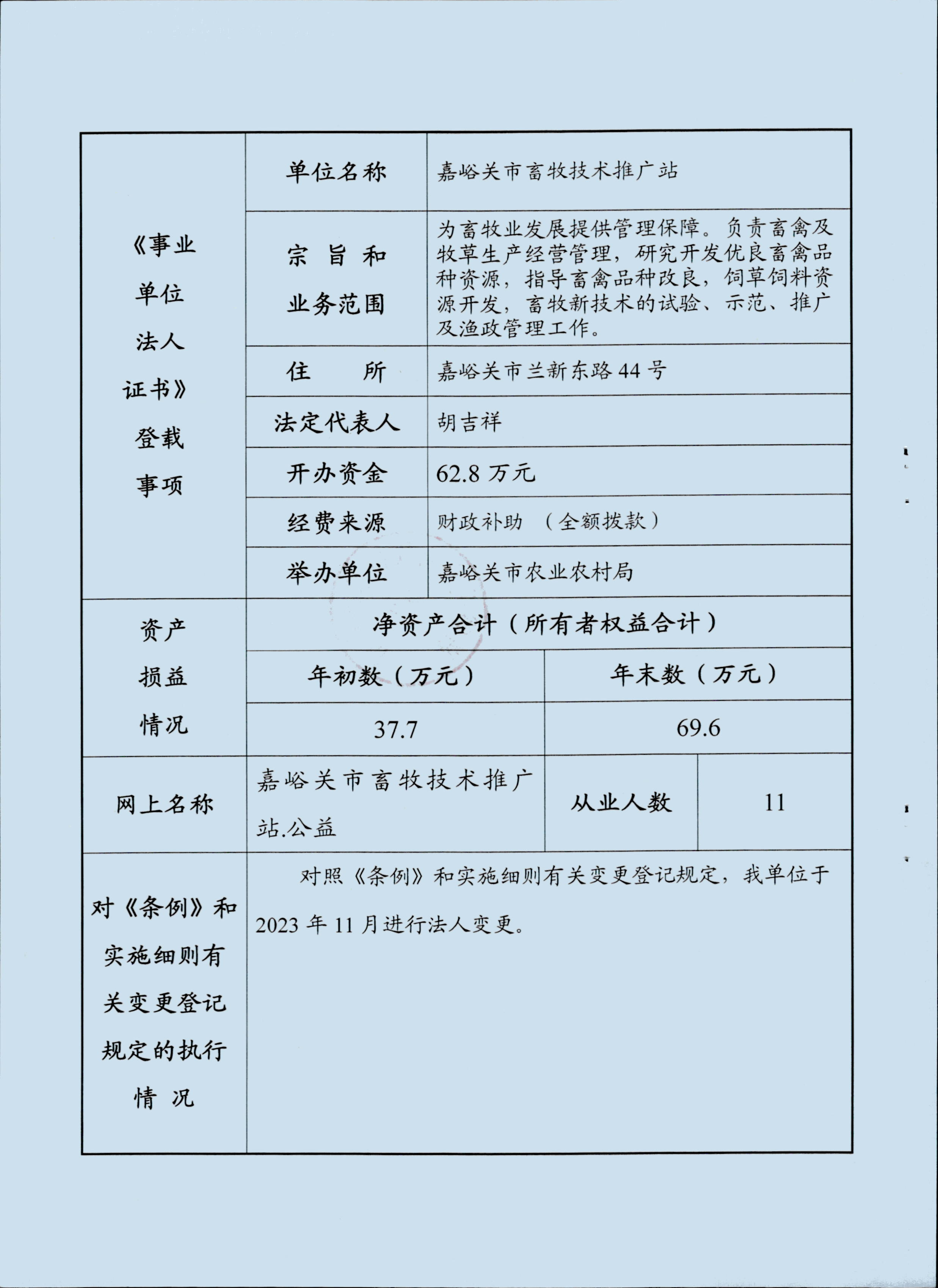 嘉峪关市畜牧技术推广站2023年度事业单位法人年度报告书
