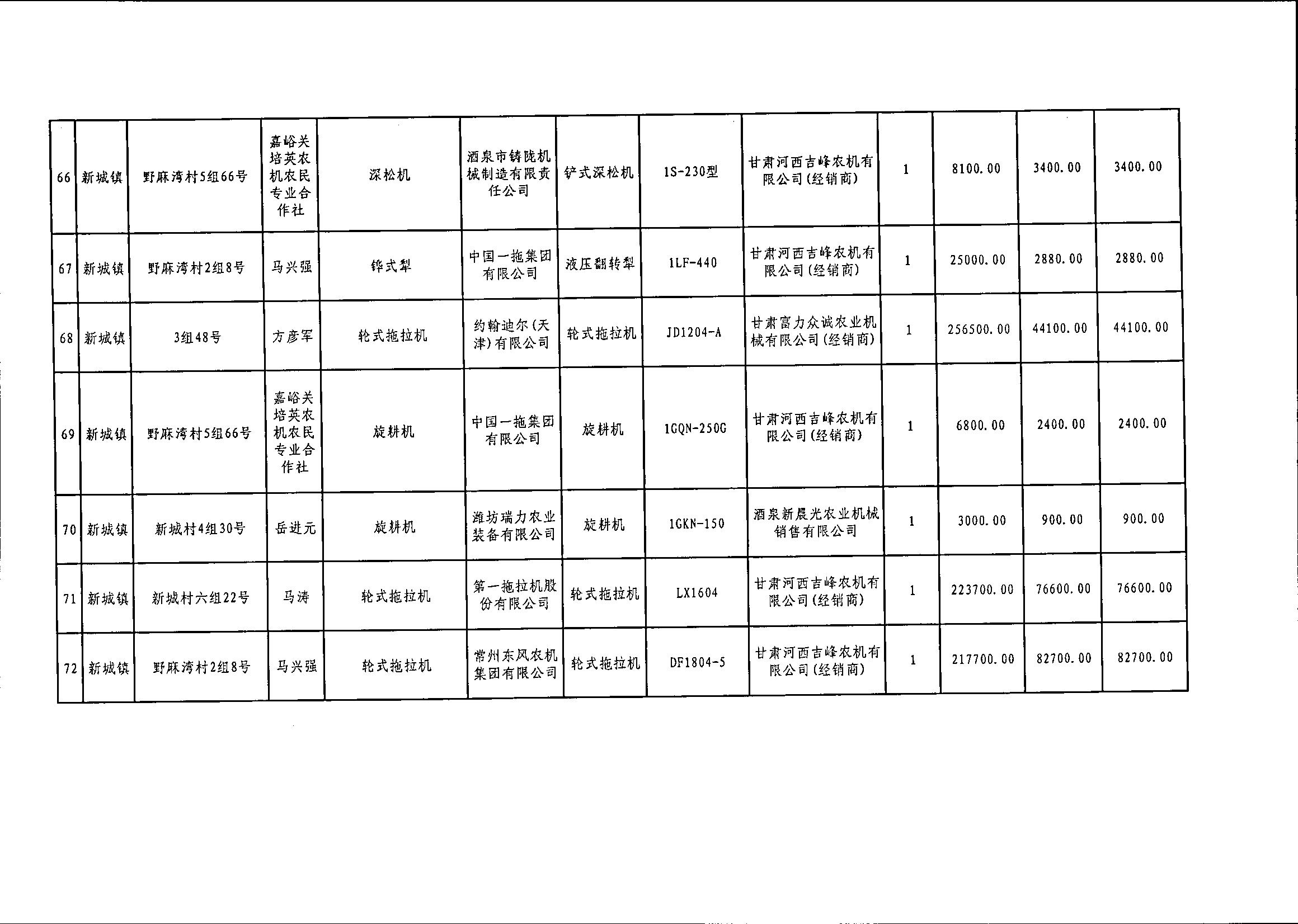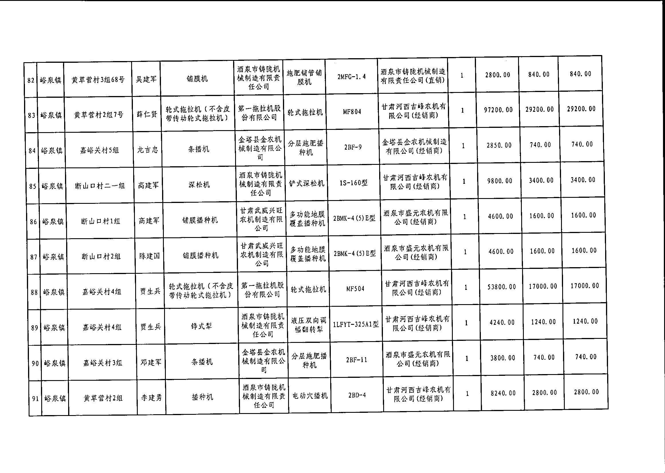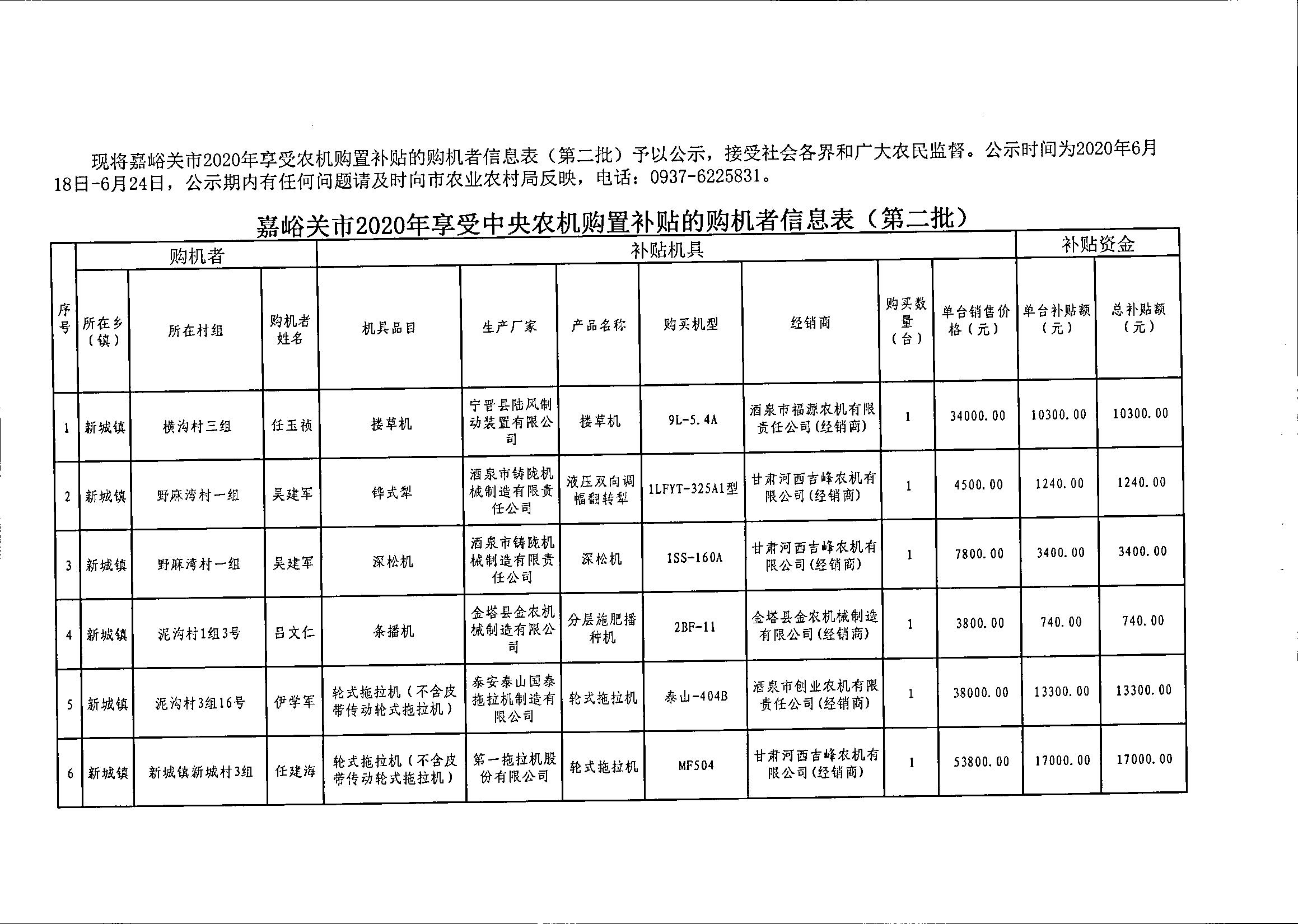 嘉峪关市2020年享受中央农机购置补贴的购机者信息表(第二批)