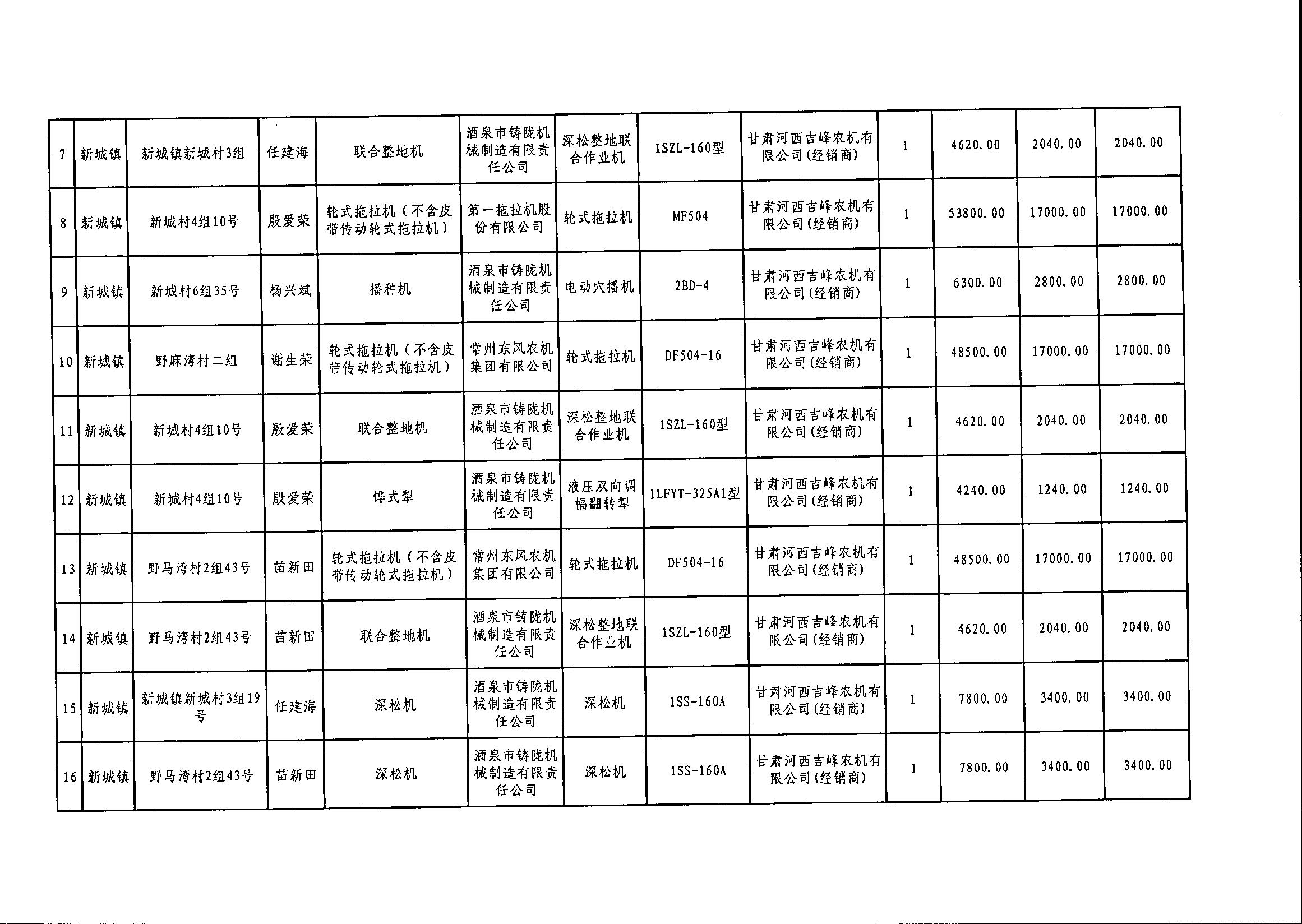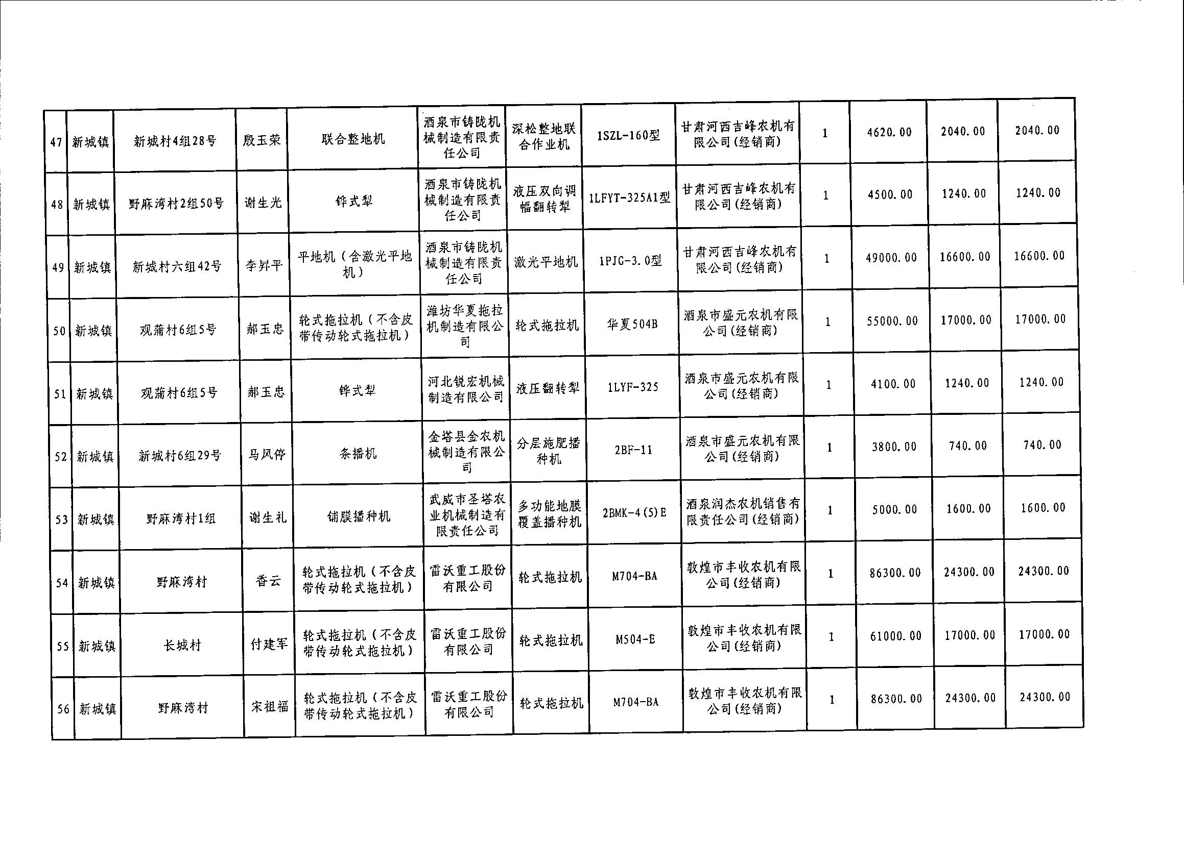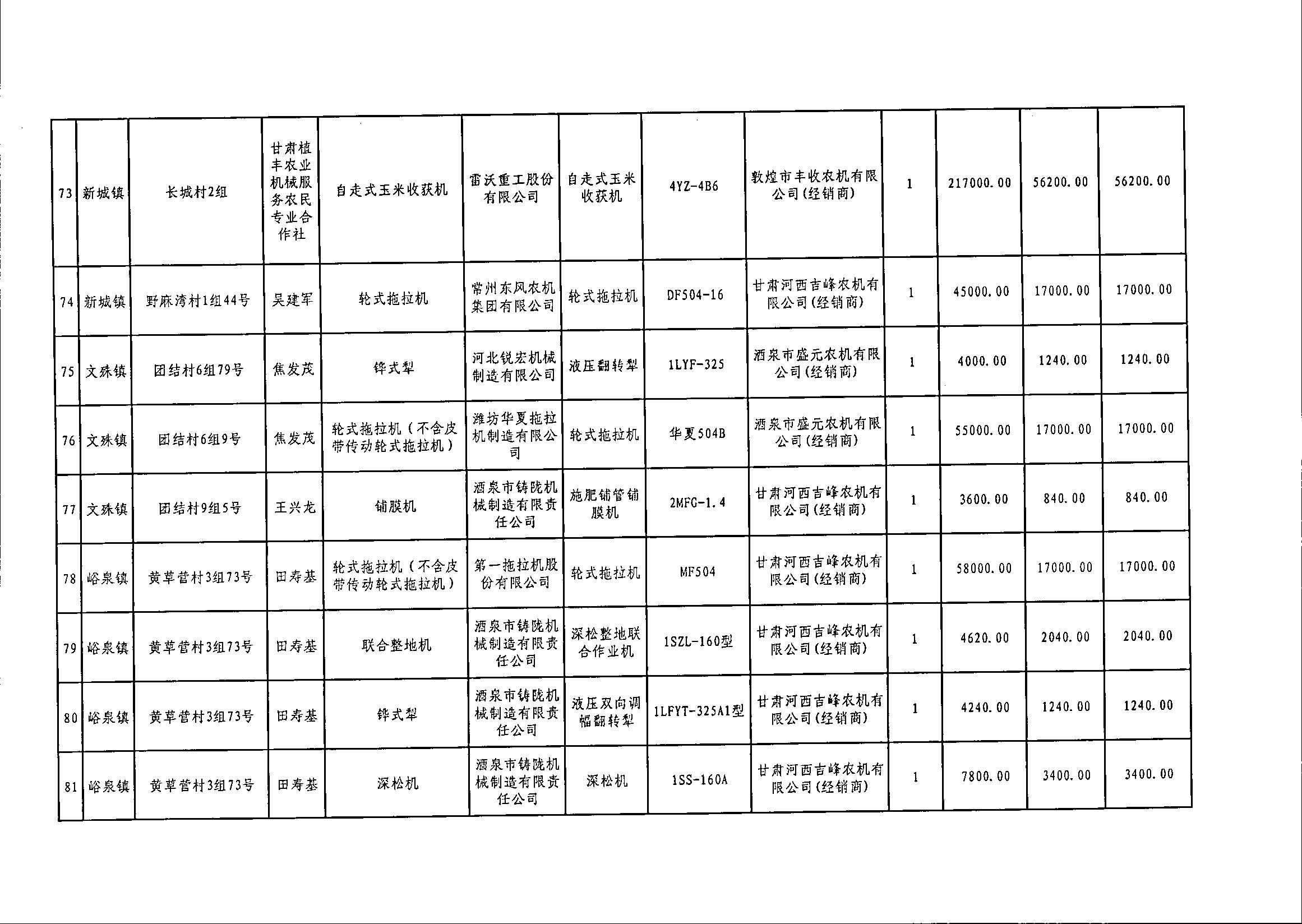 嘉峪关市2020年享受中央农机购置补贴的购机者信息表(第二批)