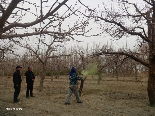 综合防控。积极推广春季果园修剪、清洁田园、深翻土壤等农业措施,同时采用生物防控、物理防控、化学防控等综合措施。在四个果园疫情监测点配置太阳能杀虫灯14台套,悬挂黄板2000张。更换喷雾泵15台套,配发4.5%高效氯氰菊酯乳油1.3吨、苹果蠹蛾迷向散发器500条,在5月和7月上中旬,组织机防队集中开展两轮统防统治,果园防控面积5054亩,防控覆盖率达100%。