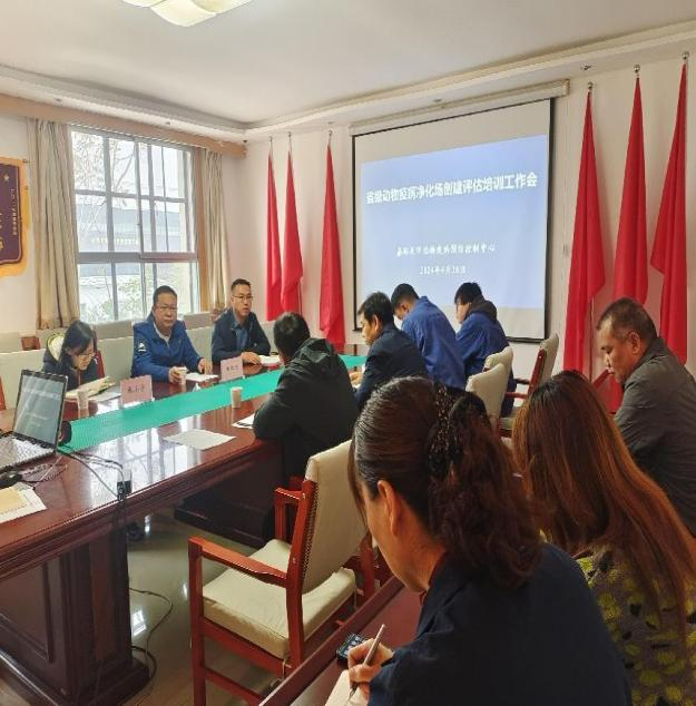 为切实做好2024年全市动物疫病净化场创建工作,不断提高养殖环节生物安全管理水平,4月28日,市动物疫控中心举办了省级动物疫病净化场创建工作培训班,兰州正大嘉峪关分公司、嘉峪关天兆宏源猪业有限公司、祁牧乳业有限公司相关人员及市动物疫控中心技术人员参加了培训。