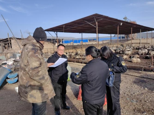 本次行动以明查暗访、例行检查、突击检查等多种形式对养殖场(户)、定点屠宰场、农资经营门店和三镇牛羊肉经营户进行执法检查和监督抽查,重点检查农资经营门店是否售卖过期或假劣农资;养殖场是否违规使用禁限用兽药及其他化合物、是否严格遵守兽药休药期规定;屠宰企业是否开展“瘦肉精”速测、肉品品质检验是否规范、出场肉品“两证两章”是否齐全、是否屠宰病死畜禽;三镇村组和城乡结合部是否存在私屠滥宰等违法违规行为。截至目前,共出动执法人员56人次,出动执法车辆14车次,检查农资经营门店7家,养殖场8家,牛羊肉经营户10家,取缔私屠滥宰违法窝点1处,查处私屠滥宰等违法违规案件4起,其中:一般程序案件1件,简易程序案件3件,没收未经检疫羊肉11.15公斤,对违法行为轻微的初次违法者宣传法律法规并发放责令整改通知书3份。