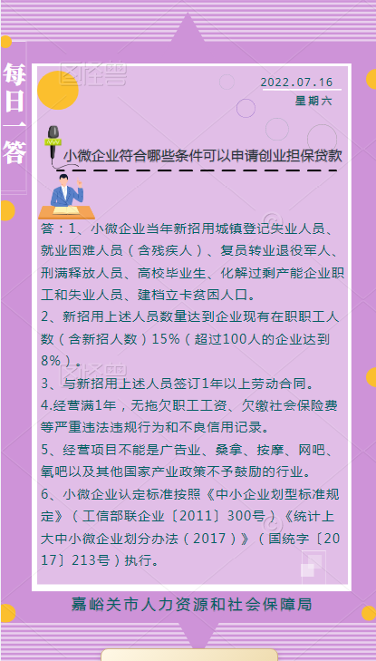 【7月16日】小微企业符合哪些条件可以申请创业担保贷款