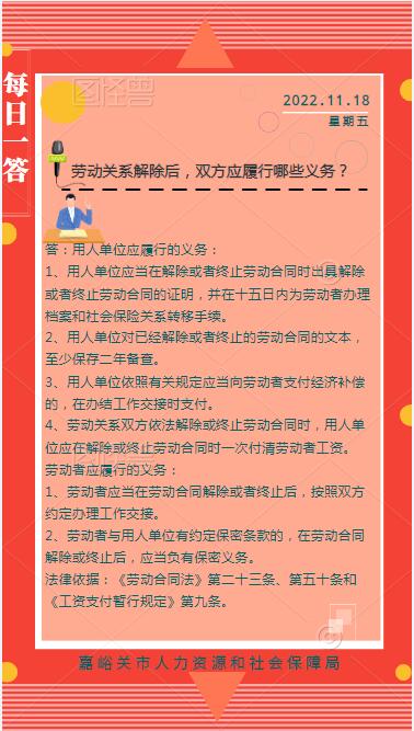 【11月18日】劳动关系解除后,双方应履行哪些义务?