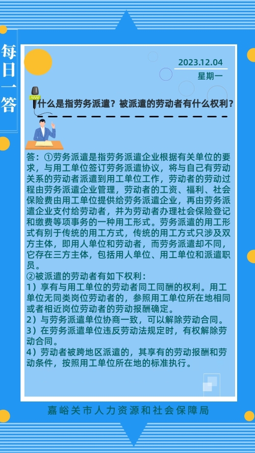 【12月4日】什么是指劳务派遣?被派遣的劳动者有什么权利?