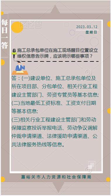 【3月12日】施工总承包单位在施工现场醒目位置设立维权信息告示牌,应该明示哪些事项?