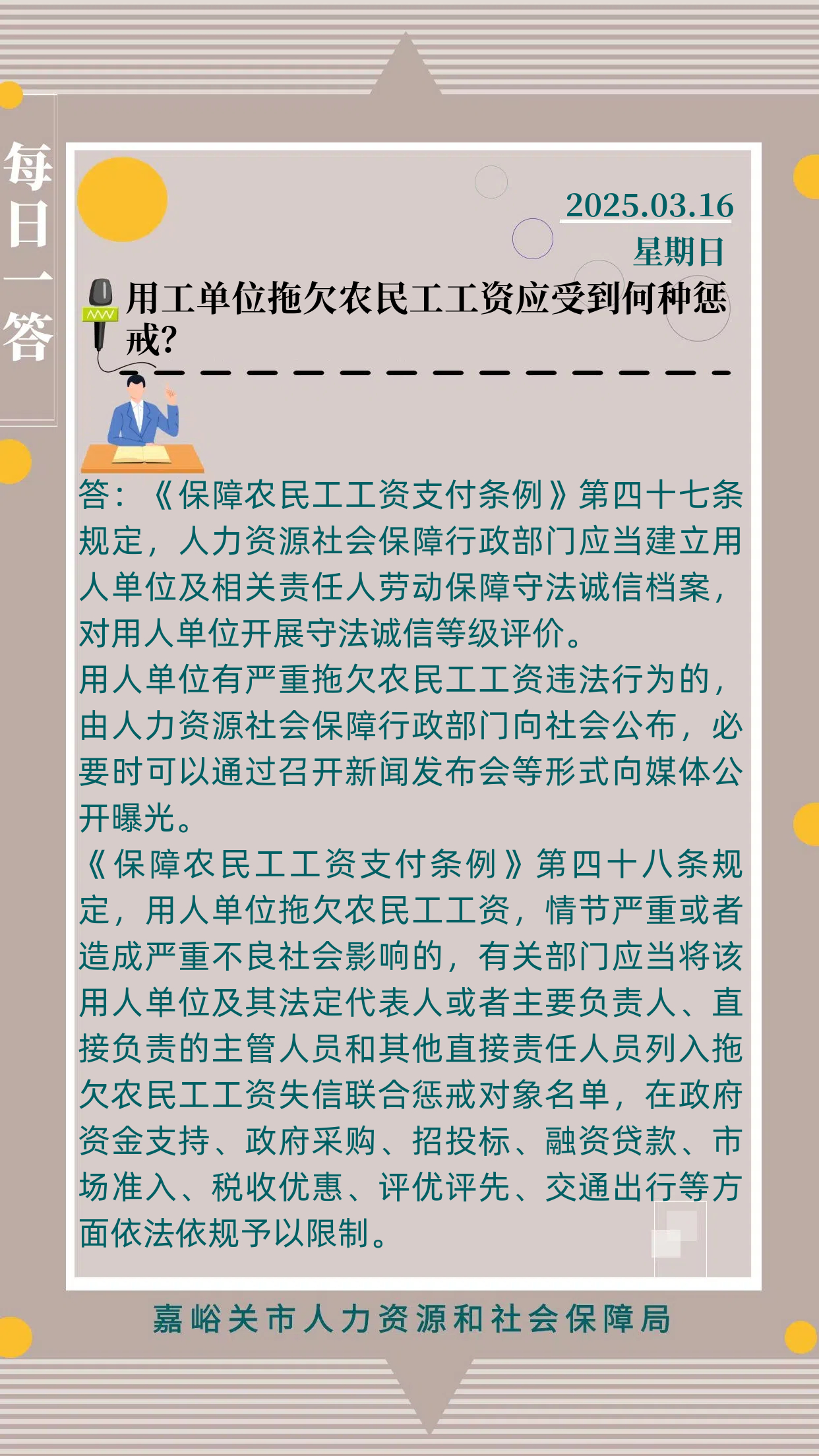 【3月16日】用工单位拖欠农民工工资应受到何种惩戒?