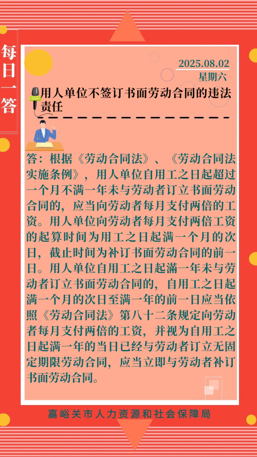 【8月2日】用人单位不签订书面劳动合同的违法责任