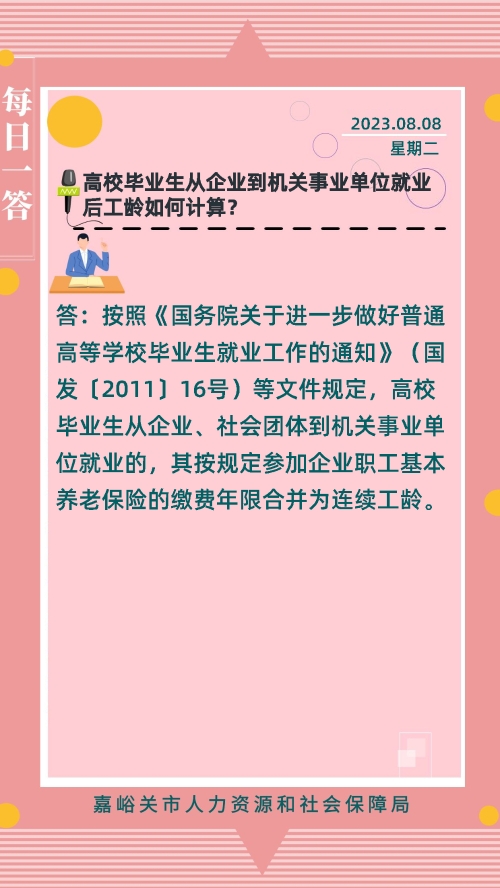 【8月8日】高校毕业生从企业到机关事业单位就业后工龄如何计算?