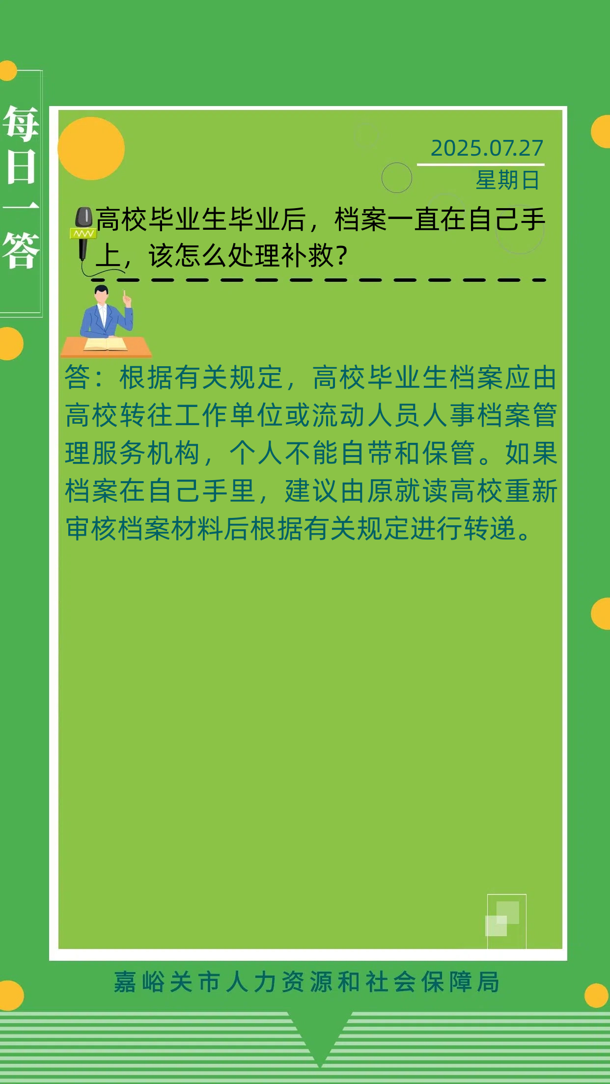 【7月27日】高校毕业生毕业后,档案一直在自己手上,该怎么处理补救?