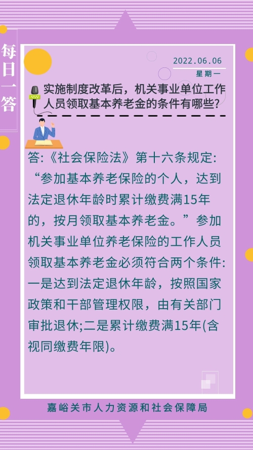 【6月6日】实施制度改革后,机关事业单位工作人员领取基本养老金的条件有哪些?