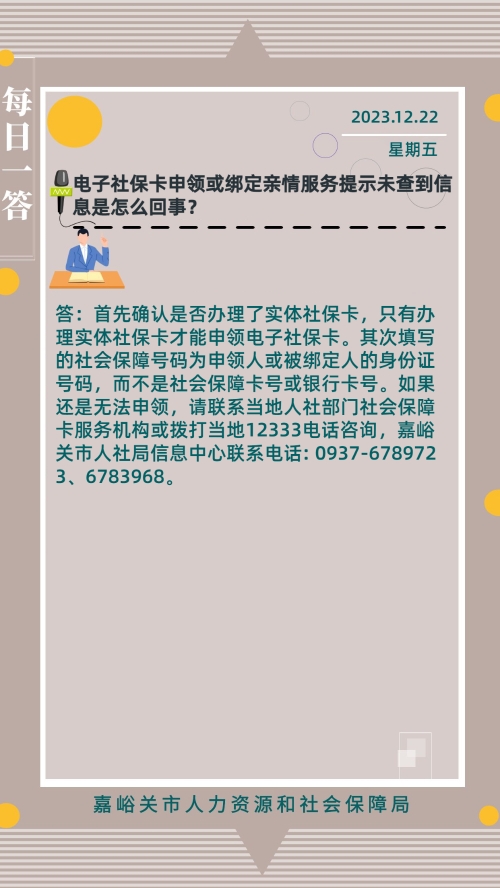 【12月22日】电子社保卡申领或绑定亲情服务提示未查到信息是怎么回事?