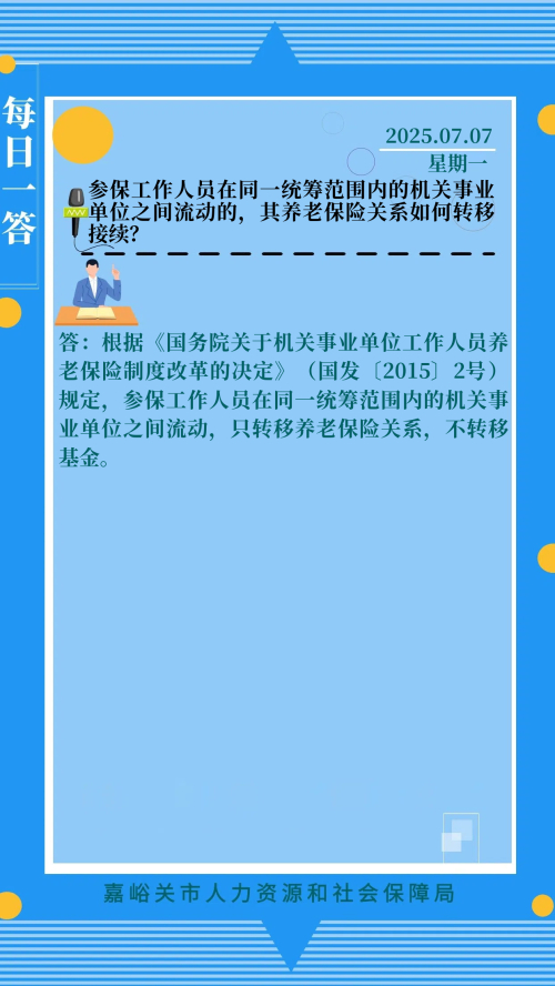 【7月7日】参保工作人员在同一统筹范围内的机关事业单位之间流动的,其养老保险关系如何转移接续?