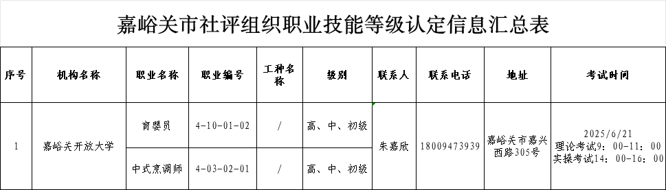 附件:嘉峪关市社评组织职业技能等级认定信息汇总表