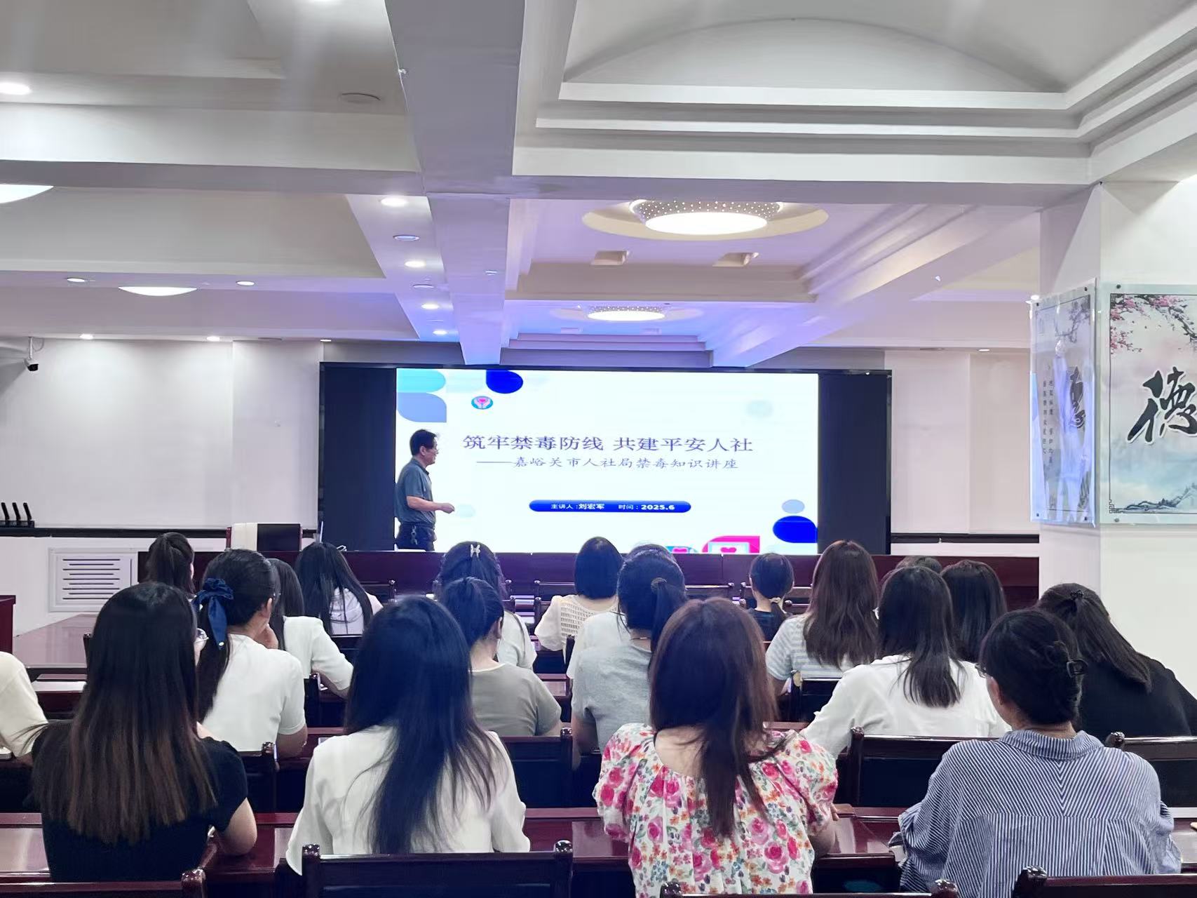 为进一步增强人社系统干部职工禁毒意识,筑牢禁毒思想防线,6月26日,嘉峪关市人社局开展“筑牢禁毒防线 共建平安人社”禁毒知识专题讲座。