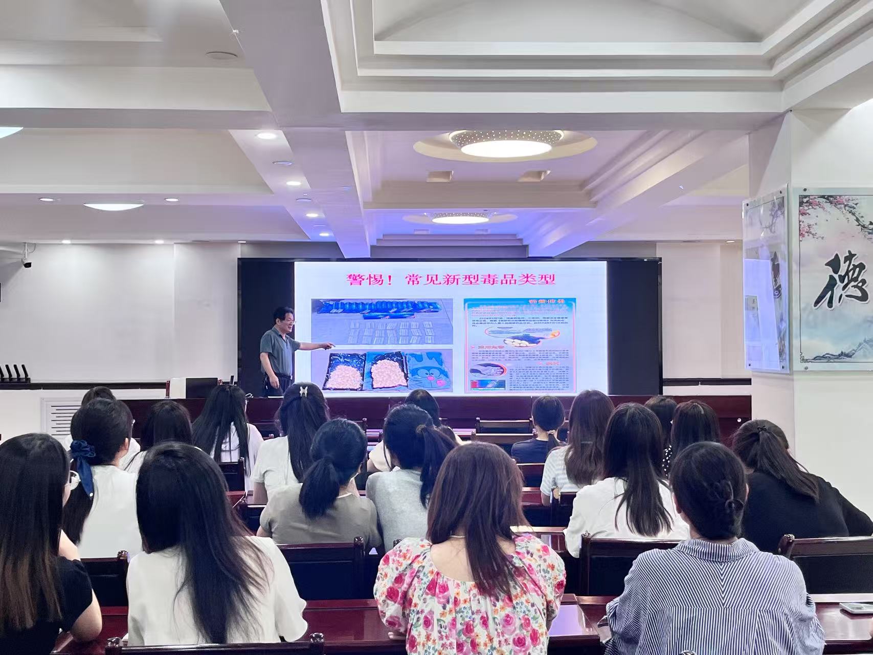 禁毒知识深度普及,提升识毒防毒能力。讲座围绕当前毒情形势、毒品分类及危害、禁毒法律法规等内容展开系统讲解。重点聚焦“奶茶包”“跳跳糖”“电子烟烟弹”等新型伪装毒品的隐蔽性、成瘾性进行深入剖析,结合实际案例揭示毒品对个人健康、家庭和谐及社会稳定造成的严重破坏。通过图文并茂的演示和触目惊心的数据,让全体干部职工深刻认识到“毒品是万恶之源”,进一步强化“珍爱生命、远离毒品”自我约束与社会责任。