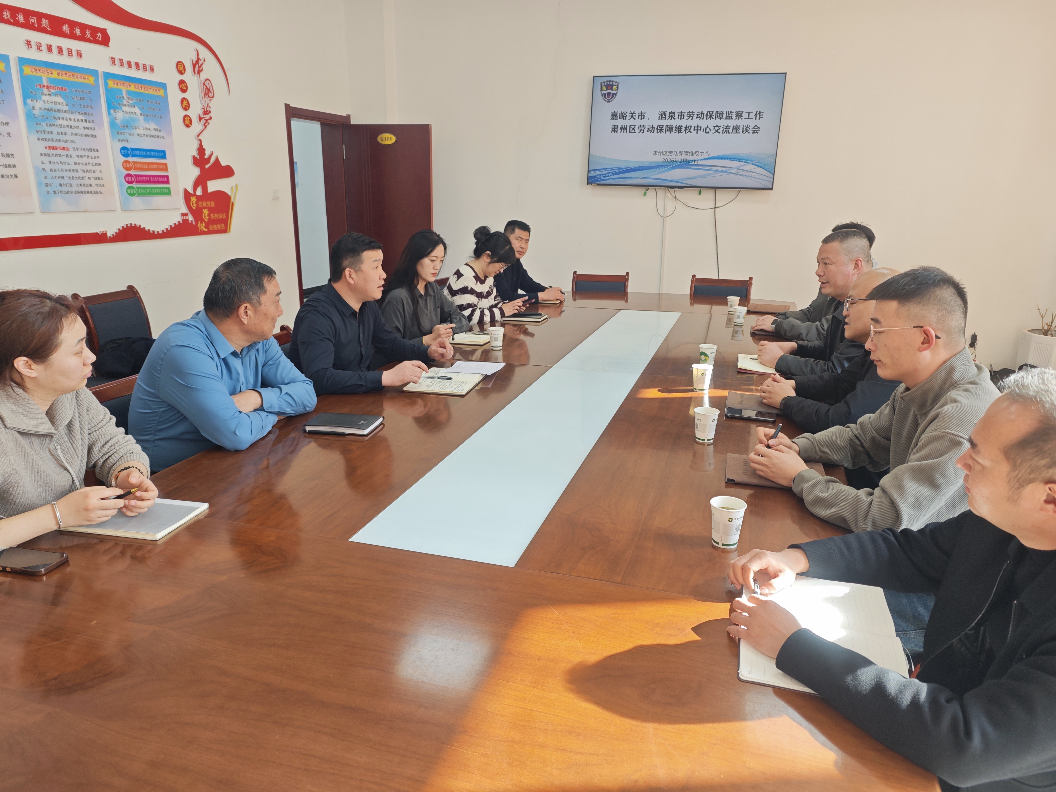 随后,交流团队前往肃州区劳动保障维权中心进行了实地参观,交流学习肃州区在部门协同联动、优化服务流程、提升基层办案人员办案效率等方面的创新举措,听取基层办案人员办案心得,形成先进经验。对当地标准化执法、精细化服务、智能化监管给予高度评价。