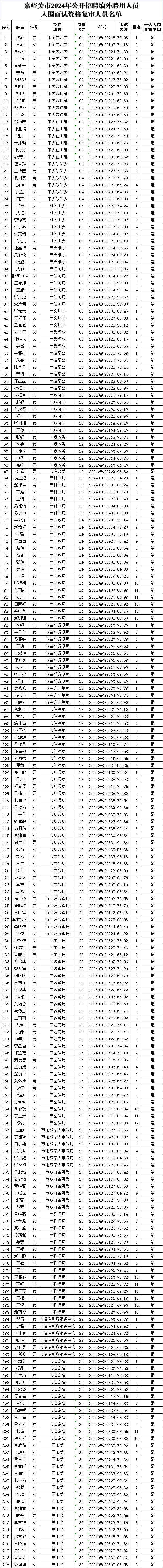 嘉峪关市2024年公开招聘编外聘用人员入围面试资格复审人员名单(见附件)。