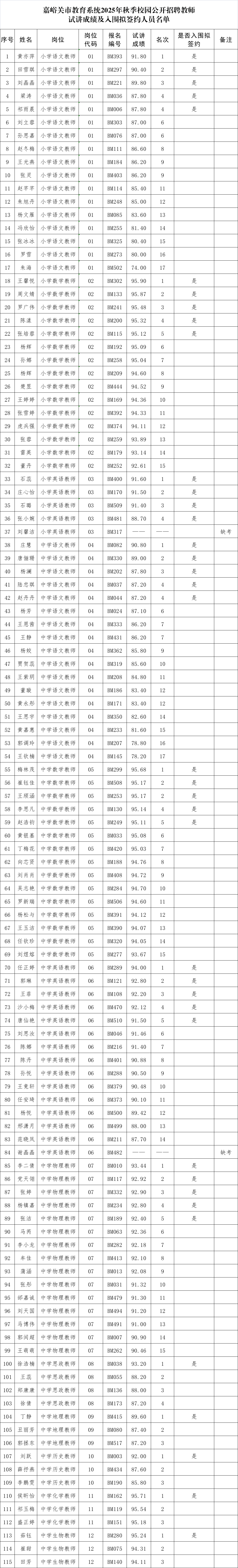 附件:嘉峪关市教育系统2025年秋季校园公开招聘教师试讲成绩及入围拟签约人员名单
