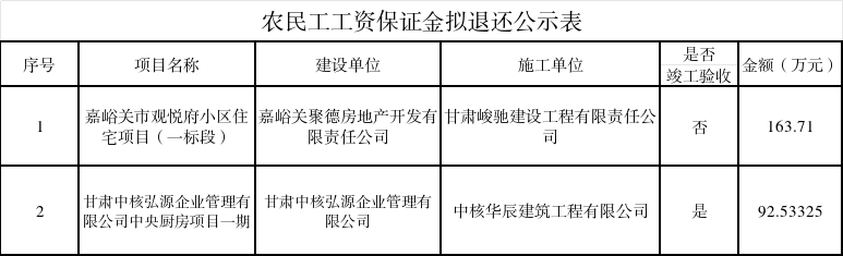 附件:农民工工资保证金拟退还公示表