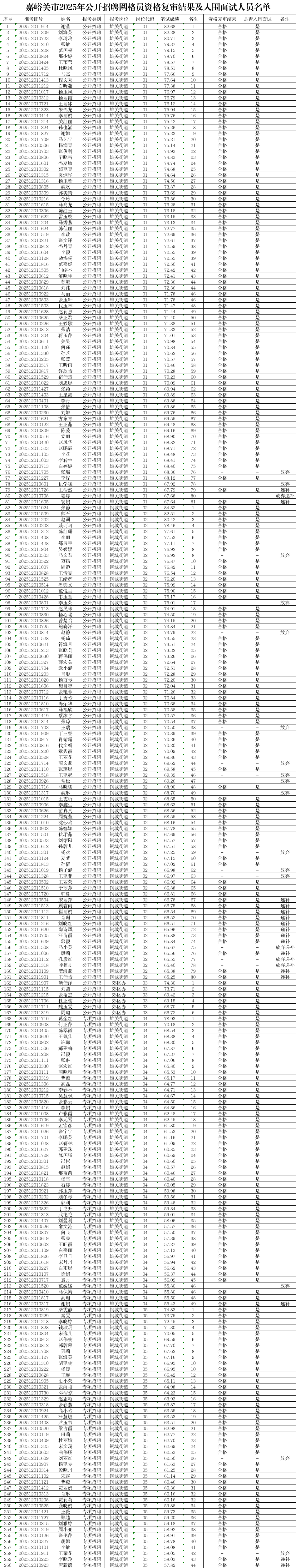 附件:嘉峪关市2025年公开招聘网格员资格复审结果及入围面试人员名单