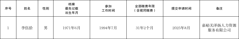 嘉峪关市人力资源和社会保障局关于2025年8月申领病残津贴参保人员情况公示