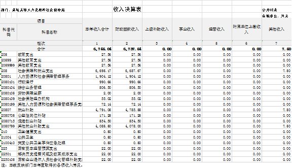 二、收入决算表