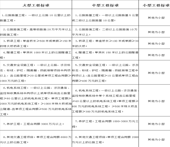 7.参与完成下列技术工作之一:1个大型或2个中型交通附属工程项目管理;1个大型或2个中型工程项目的机械管理;3个大型或5个中型项目的工程造价管理;工程投资额相当于大型工程1项或中型工程2项的其他交通工程项目,完成相应技术工作,并通过业务主管部门评审鉴定。