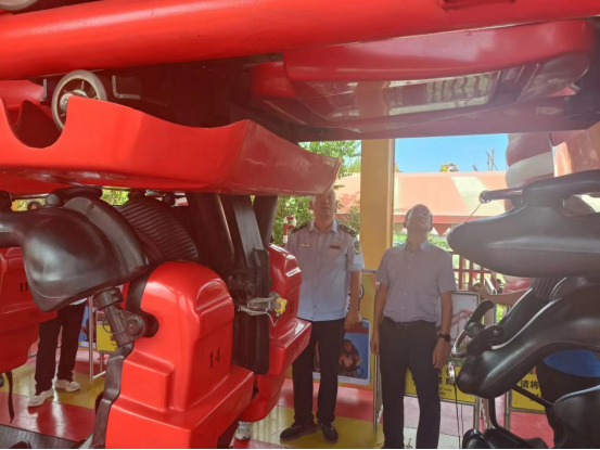 市市场监管局分管领导带队,工业园区监管所执法人员以及相关专家深入园区对方特的每一台特种设备开展了细致的检查。共检查特种设备56台,共排查出风险隐患2处,已整改到位。同时,向方特园区提出了改进建议,帮助园区进一步提升安全管理水平。