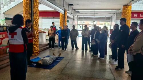 与此同时,市市场开发建设服务中心同步推进应急保障能力建设,其所属国有市(商)场已全部配备自动体外除颤仪(AED),并组织专业人员对在场经营户开展现场实操培训,切实打通应急救护“最后一公里”,构建起全方位的安全防护网络。
