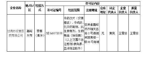嘉峪关市市场监督管理局《药品经营许可证》审批结果公告(2022第36号)
