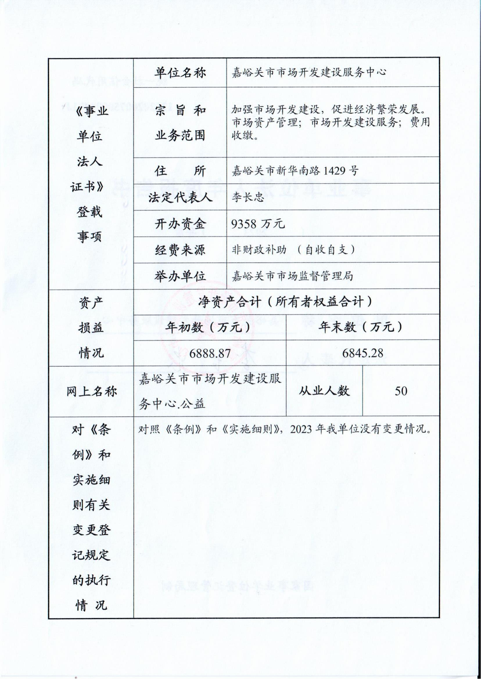 2023年度嘉峪关市市场开发建设服务中心事业单位法人年度报告书