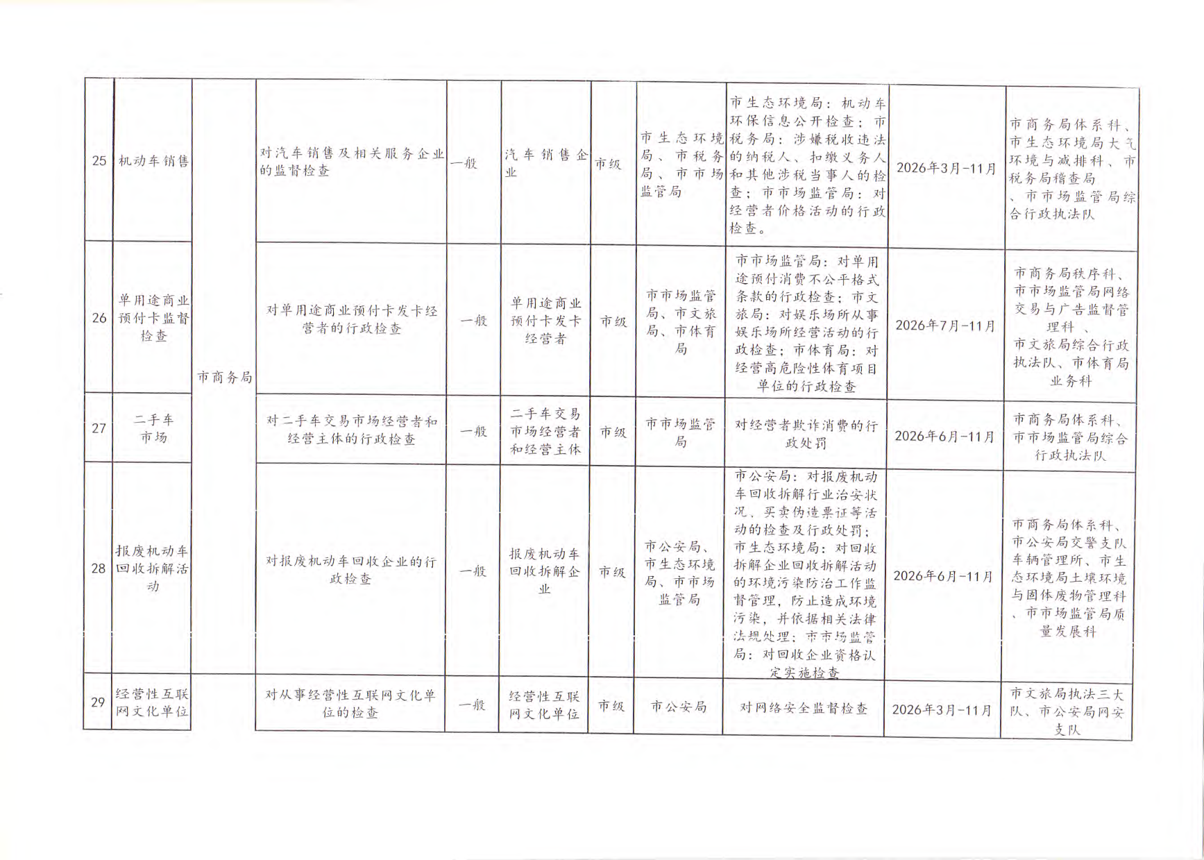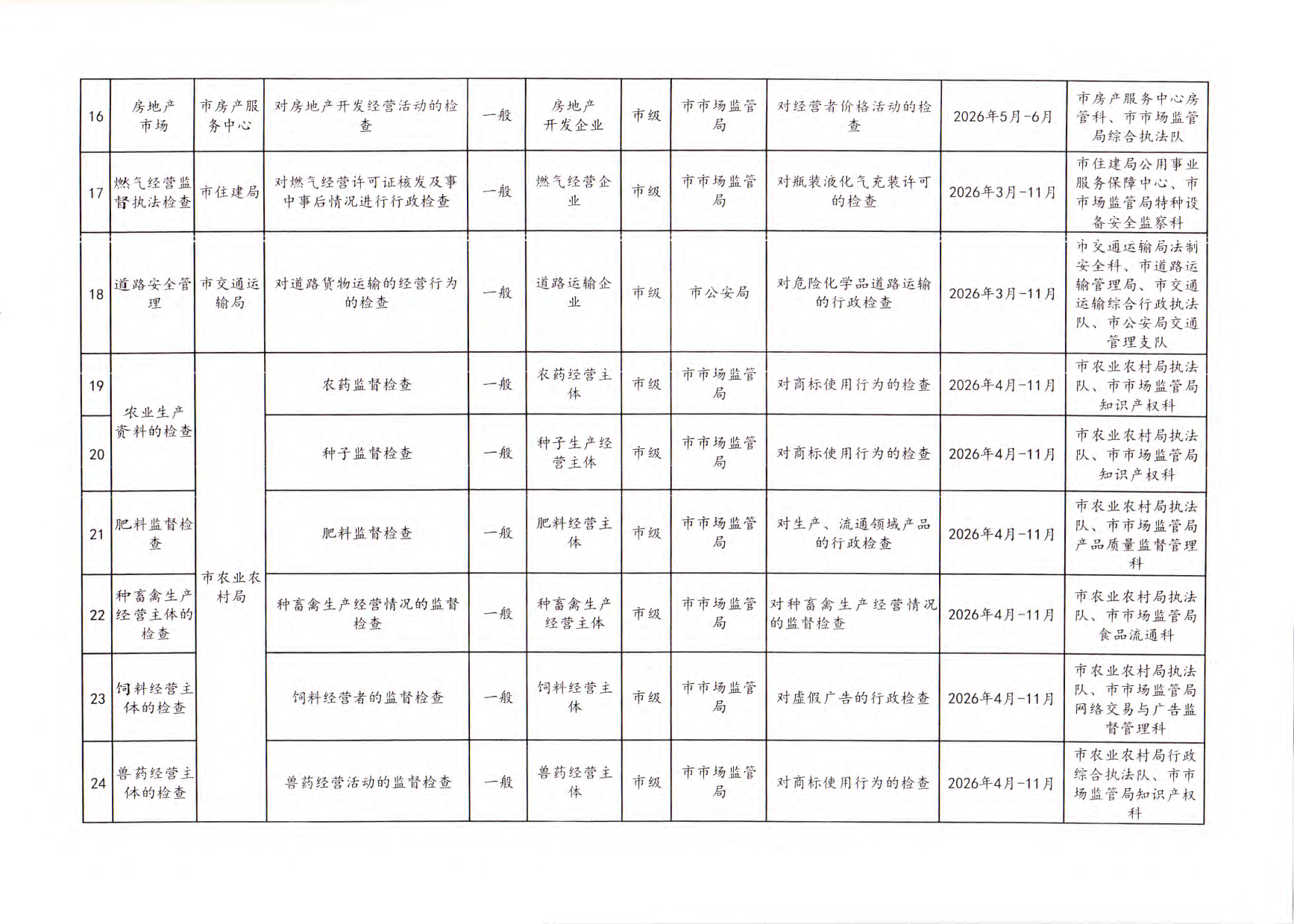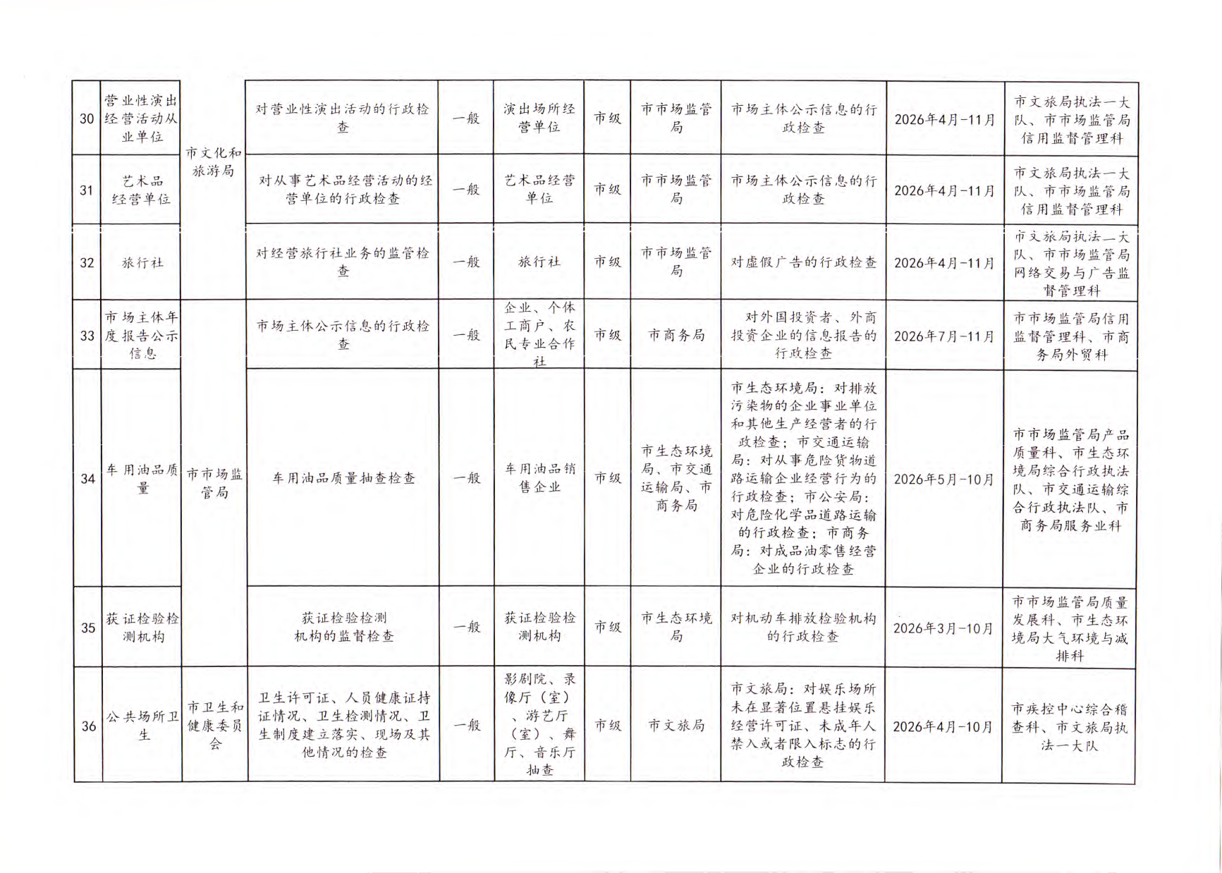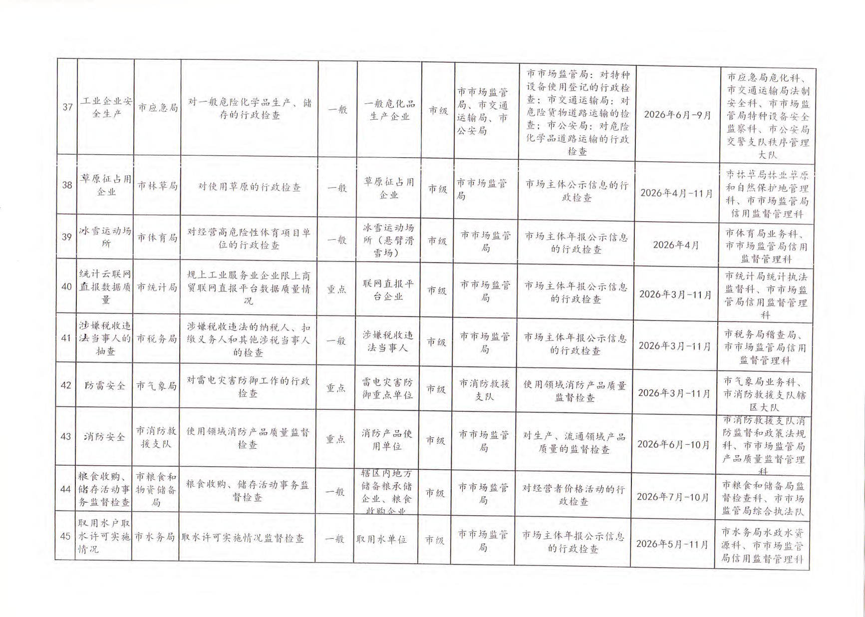 嘉峪关市市场监督管理局关于做好2026年度部门联合“双随机、一公开”监管工作的函