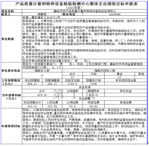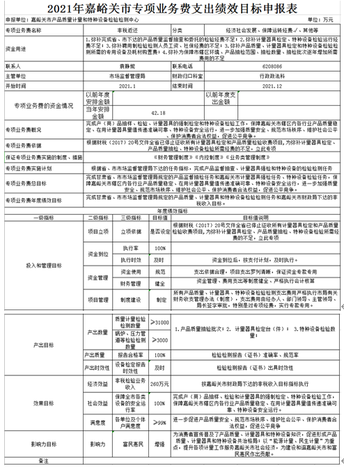 嘉峪关市产品质量计量和特种设备检验检测中心2021年部门预算信息公开情况说明