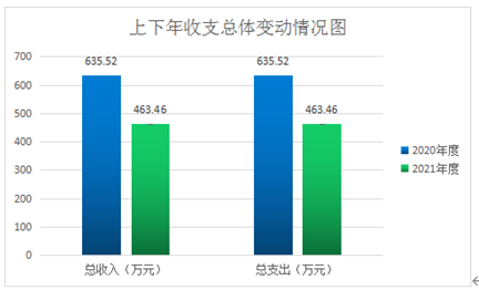 产品质量计量和特种设备检验检测中心2021年度部门预算总收入463.46万元,比上年减少172.06万元,下降27%;总支出463.46万元,比上年减少172.06万元,下降27%。