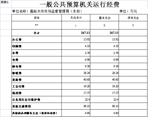 (二)公用经费267.13万元,占预算总支出的9.62%,较上年减少147.7万元,减少主要原因是将长期聘用人员工资及社会保险缴费调整到“其他工资福利支出”和“社保保障和就业支出”核算。其中:办公费13.92万元,印刷费4.18万元,水费2.78万元,电费6.96万元,邮电费9.58万元,公用取暖费28.24万元,差旅费40.6万元,公务用车运行维护费22.4万元,其他交通费98.1万元(公务员交通补贴),公务接待费零万元,工会经费18.2万元,福利费17.37万元。