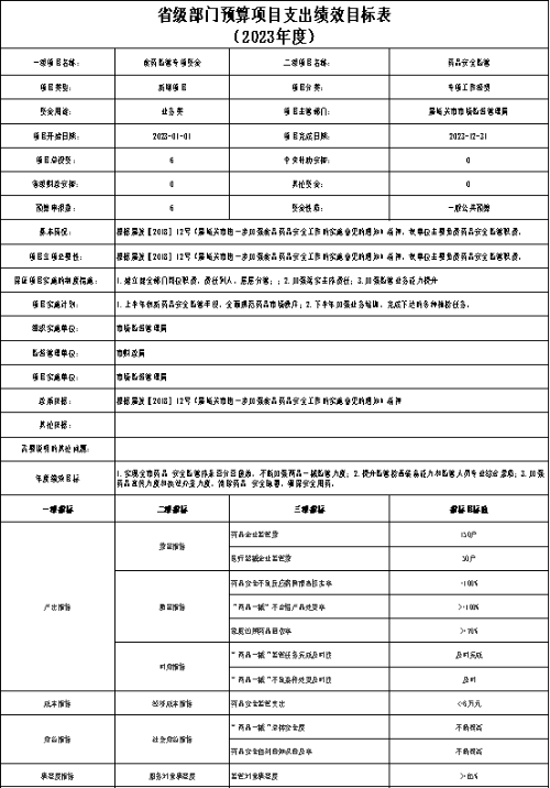 全年实行绩效目标管理的项目9个,涉及预算资金199.2万元,占部门预算项目安排总额的100%,主要是国家食品安全示范城市创建项目;食品安全监管;市场主体及秩序执法监管经费;药品安全监管;制式服装配发专项;质量安全监管经费;公务用车购置经费。对项目资金根据年初设定绩效目标,结合全年重点工作任务安排,全年分时段对绩效目标执行情况进行绩效监控,发现问题,及时纠正。通过检查账务、收集查阅资料和问卷调查等多种形式,统筹各个环节,实事求是,客观合理开展了部门2022年绩效自评工作,将评价结果作为明年编制预算和改进管理的重要依据。