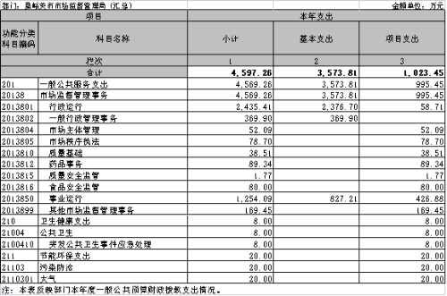 (一)一般公共服务支出年初预算数为4154万元,支出决算为4569.26万元,完成年初预算的110%,决算数大于预算数的主要原因:一是年初预算不包括上级部门的转移支付补助资金和万元;二是上年度部分项目在本年度开展完结并完成支付。主要开展以下工作:(1)行政运行支出2435.41万元,主要是行政编制人员的人员经费和公用经费支出;(2)一般行政管理事务支出369.9万元,主要是事业编制的人员经费和公用经费支出;(3)开展市场主体监督管理支出52.09万元,主要用于市场准入、许可审批、信用监管等市场主体管理专项工作支出;(4)开展市场秩序执法支出78.7万元,主要用于反垄断、价格监督、反不正当竞争、规范直销与打击传销、网络交易监管、广告监管、消费者权益保护及综合执法等市场监管工作支出;(5)开展质量基础专项支出38.51万元,主要计量、标准、认证认可、检验检测乖质量基础专项工作;(6) 开展药品事务专项支出89.34万元,主要用于药品监督管理和药品检验检测专项工作支出;(7)开展产品质量安全监管(计量标准化与质量安全)和特种设备监察支出1.77万元,该项经费主要用于主要用于产品质量安全监管、特种设备安全监管等产品质量安全监管专项工作支出;(8)食品安全事务支出80万元,主要用于食品安全监管和食品检验检测等专项工作支出;(9)事业运行支出1254.09万元,主要反映市食品药品和医疗器材检验检测中心、市产品质量计量和特种设备检验检测中心的人员经费及公用经费支出;(10)其他市场监督管理事务支出169.45万元,该项经费主要用于其他食品药品监督管理事务支出、食品示范城市创建支出、知识产权奖励补助支出及非公党建支出。